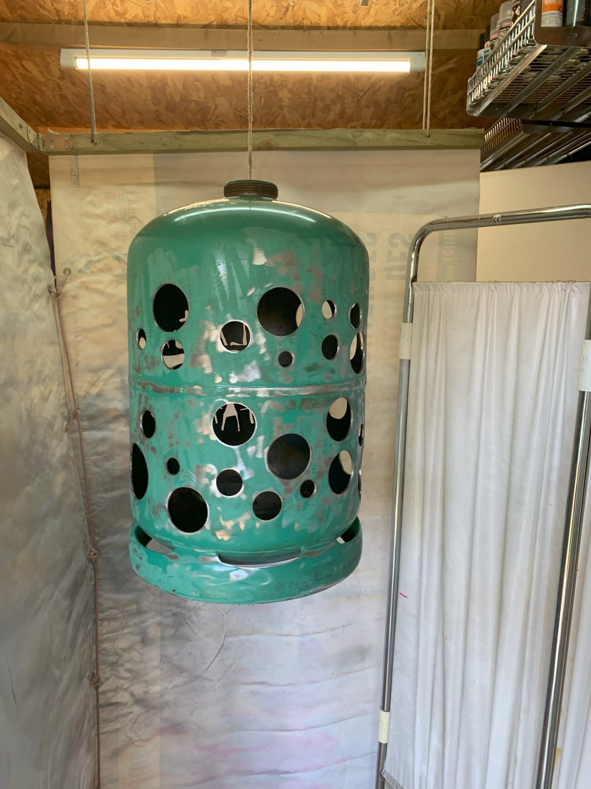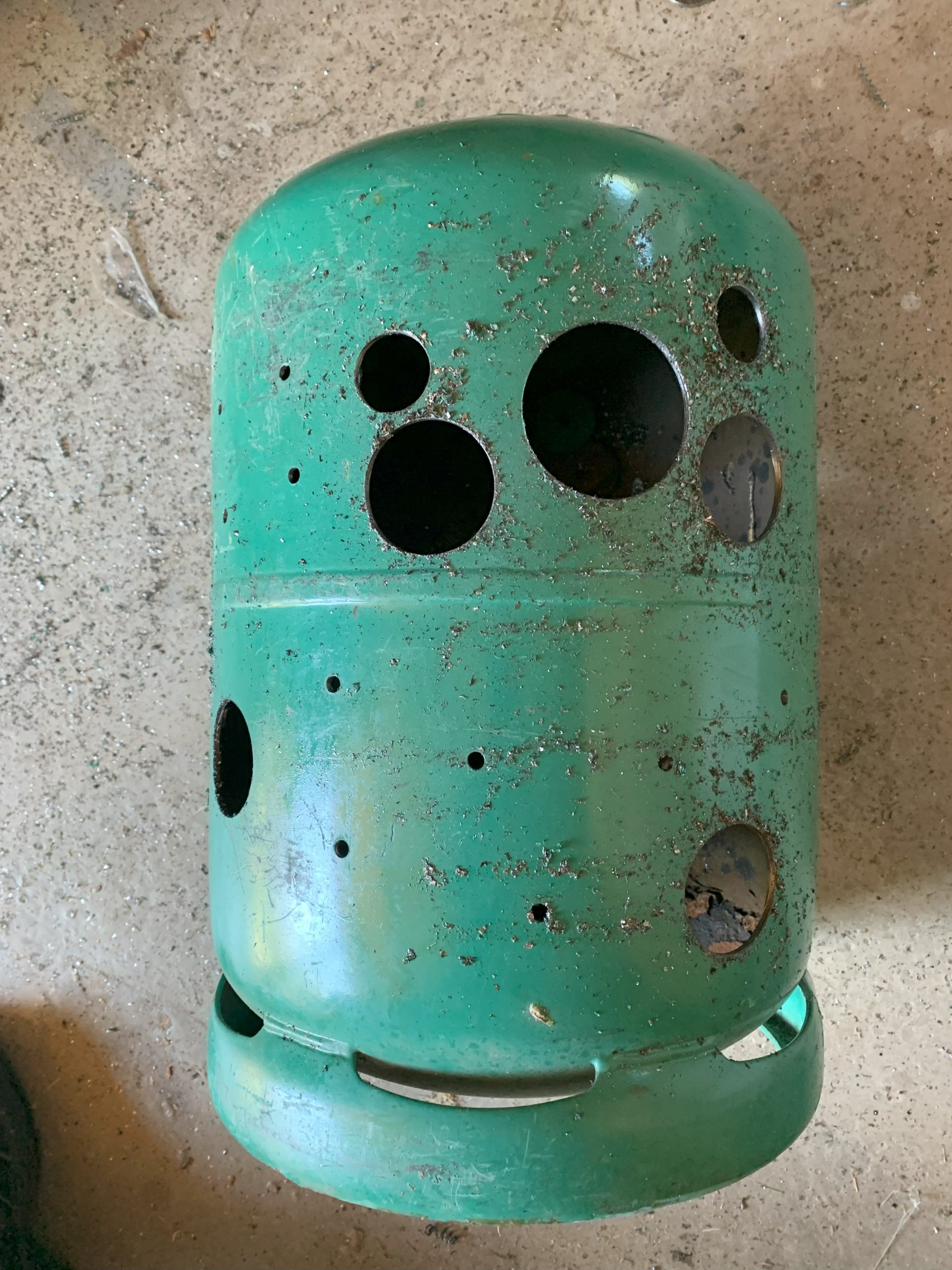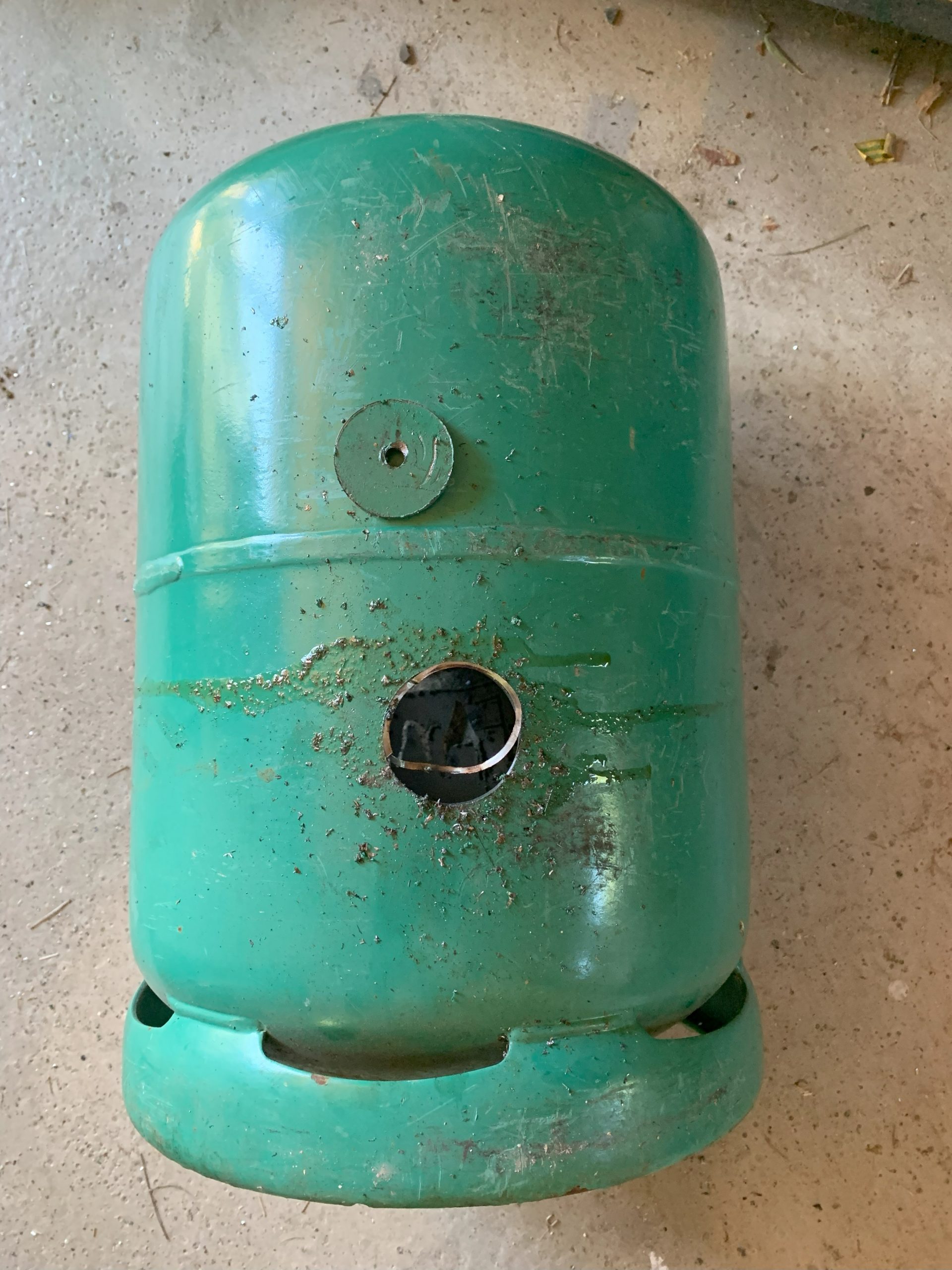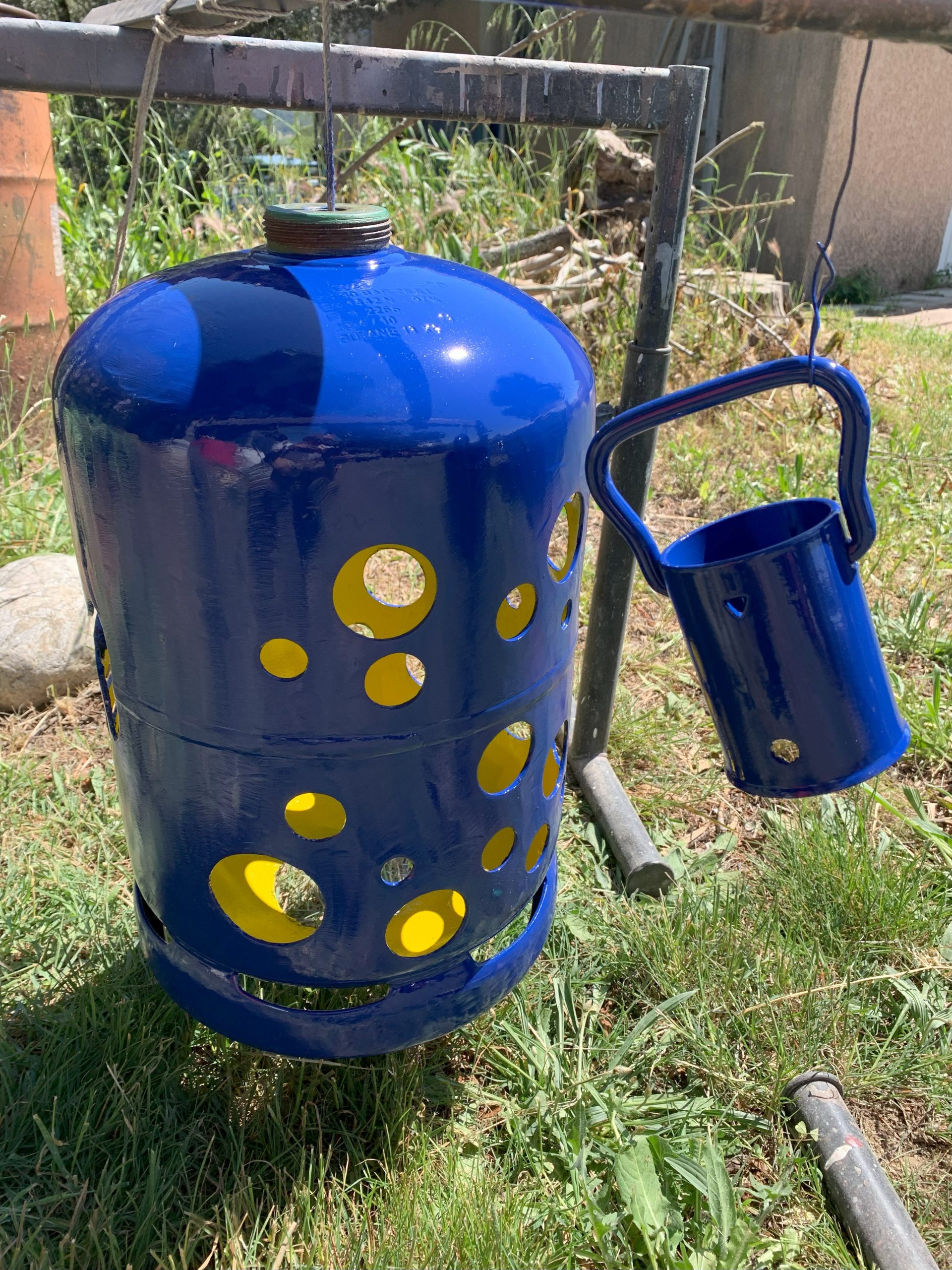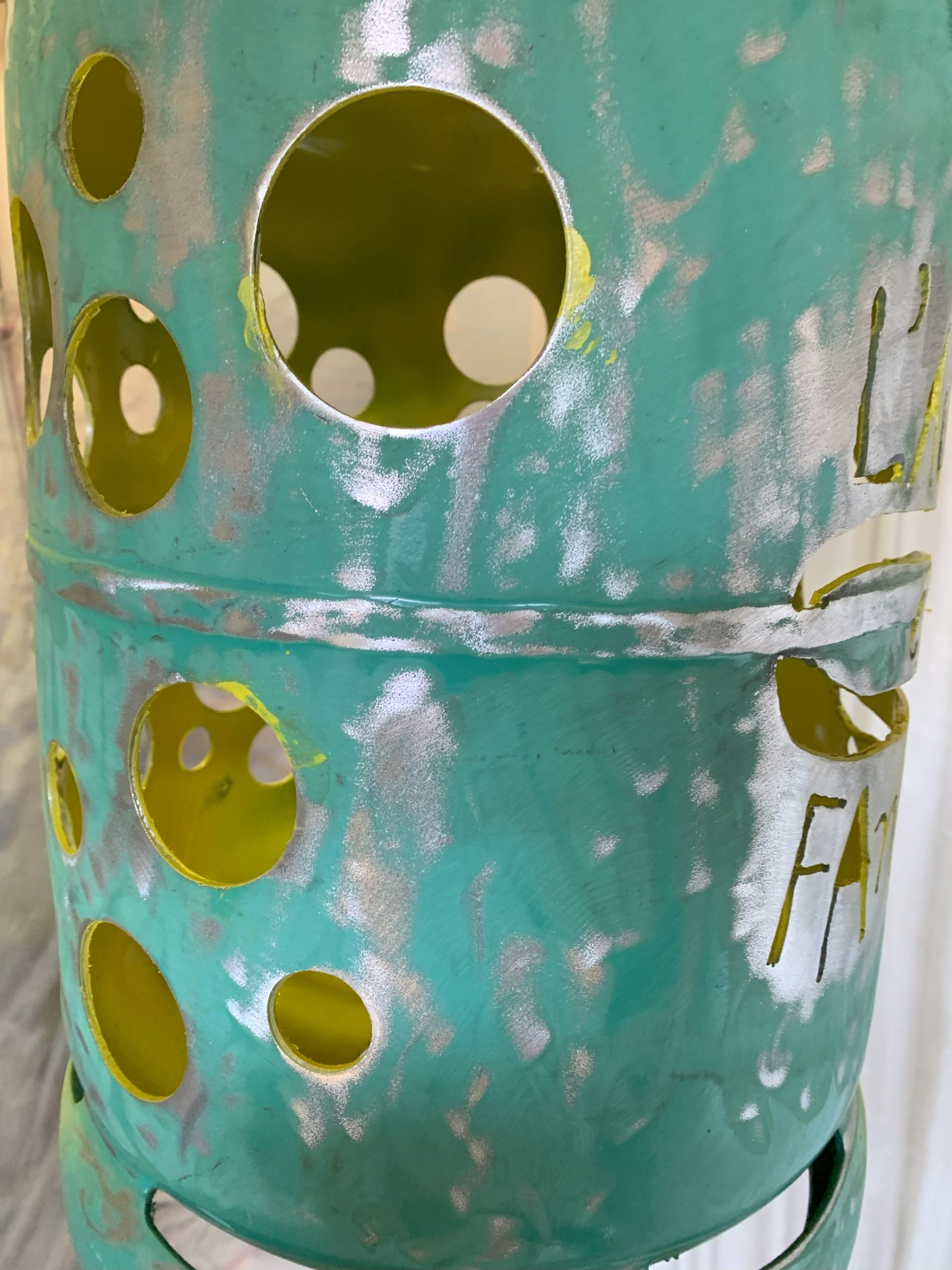 Pour remercier les organisateurs j’ai fabriqué une (autre ) lampe avec une bouteille de gaz en reproduisant leur logo.