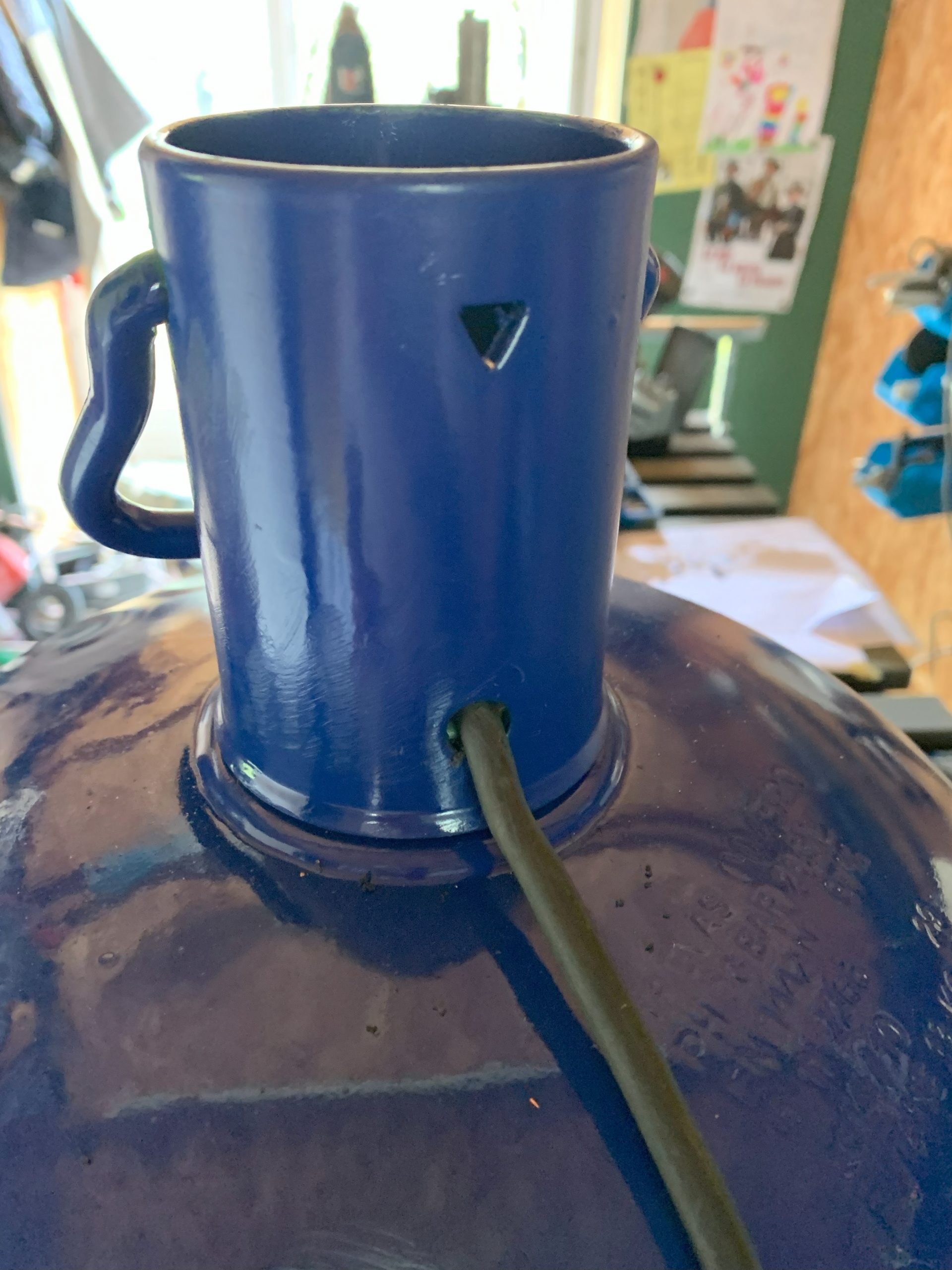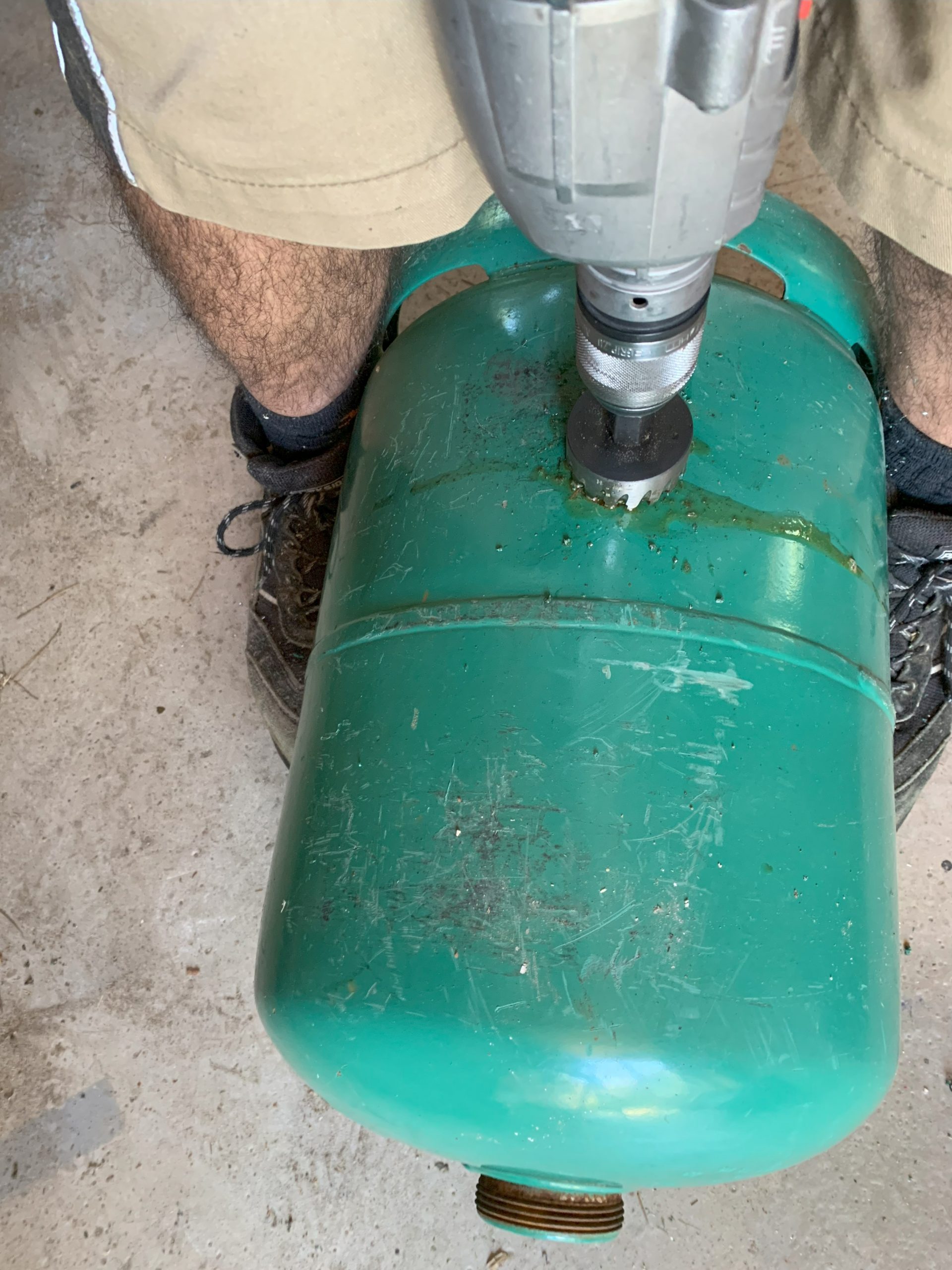 Je l’ai fait en bloquant la bouteille au sol entre mes pieds et en tenant la perceuse équipée d’une scie cloche à la main.