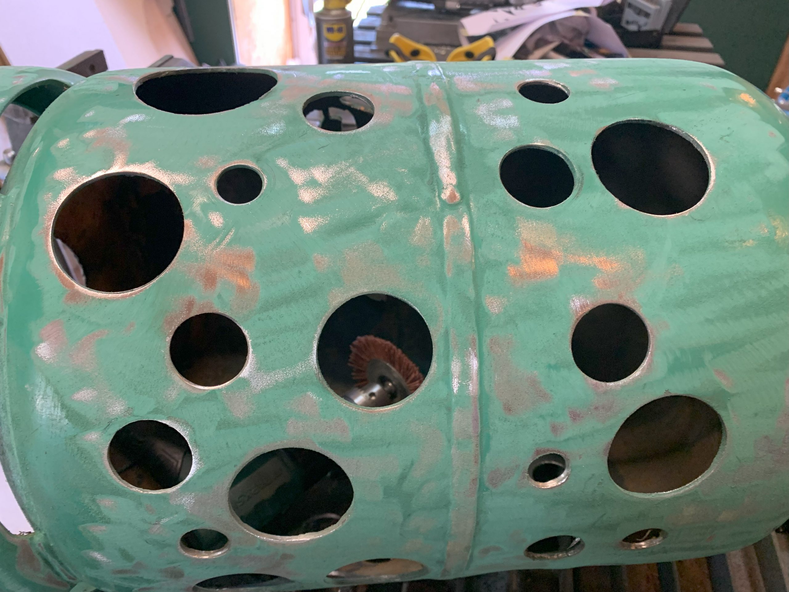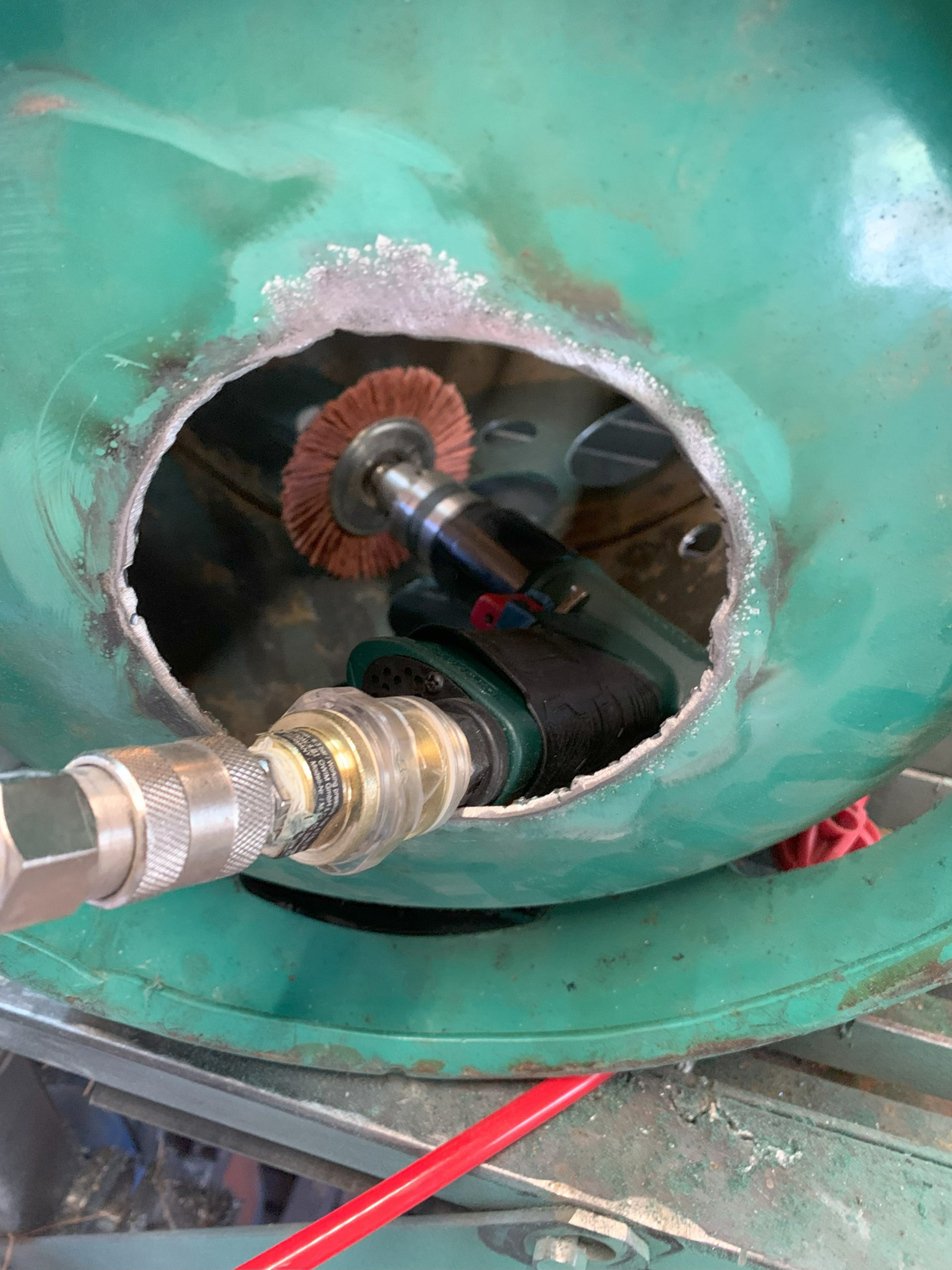 Pour l’intérieur j’ai utilisé une brosse montée sur une perceuse pneumatique qui pouvait passer par l’ouvertre du bas de la bouteille.