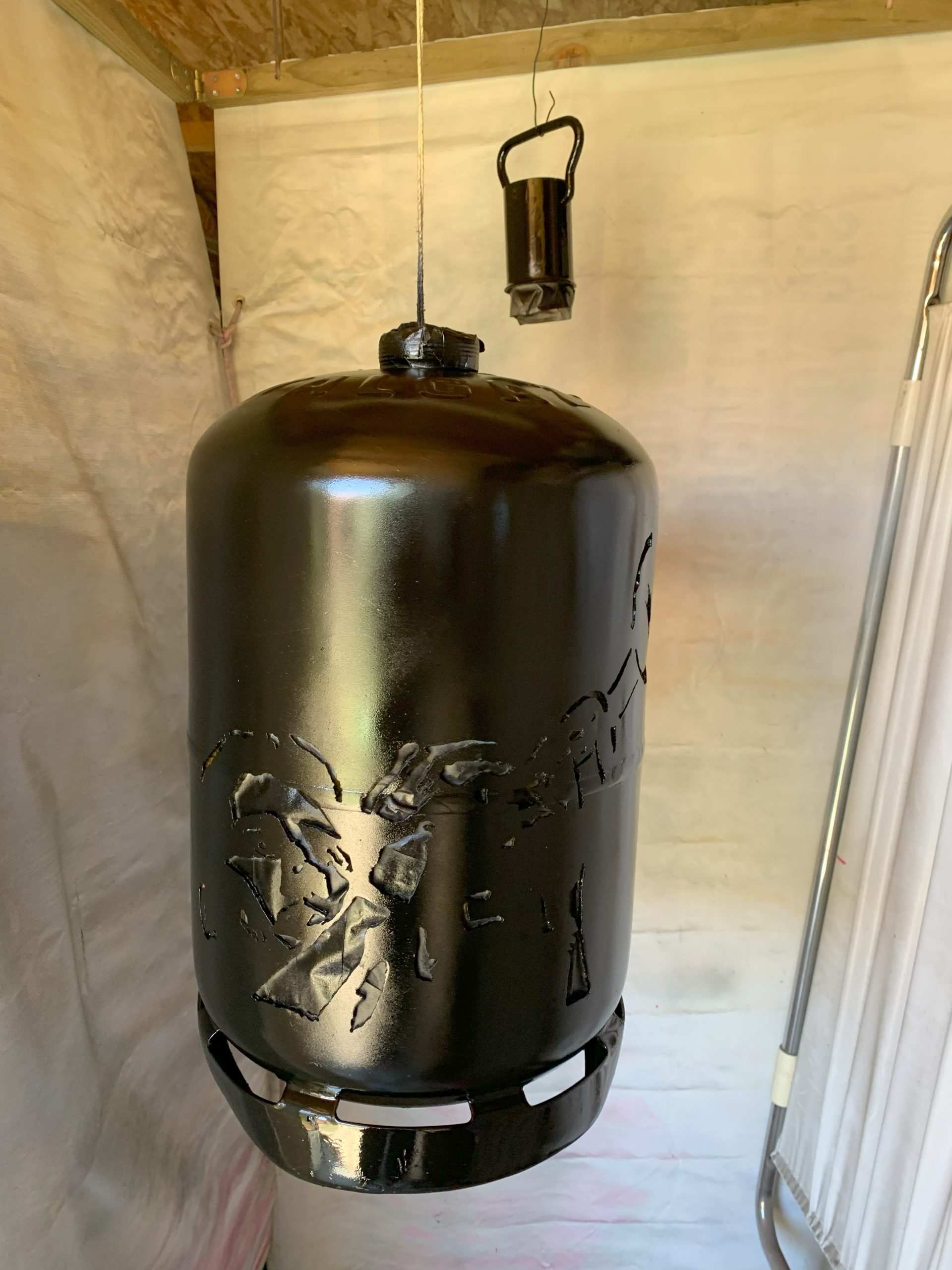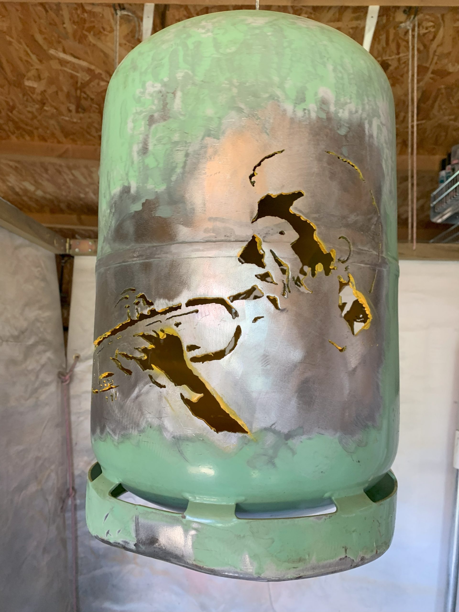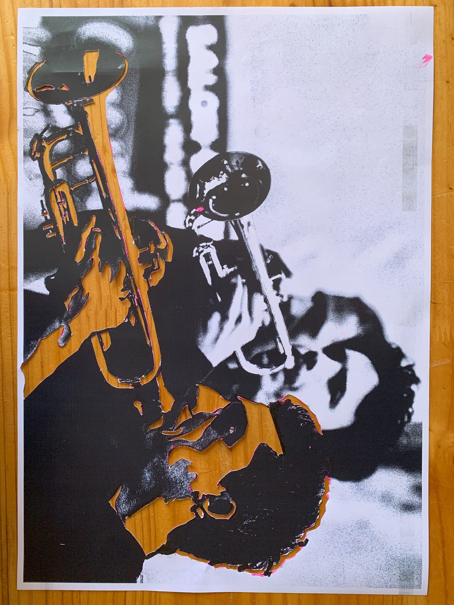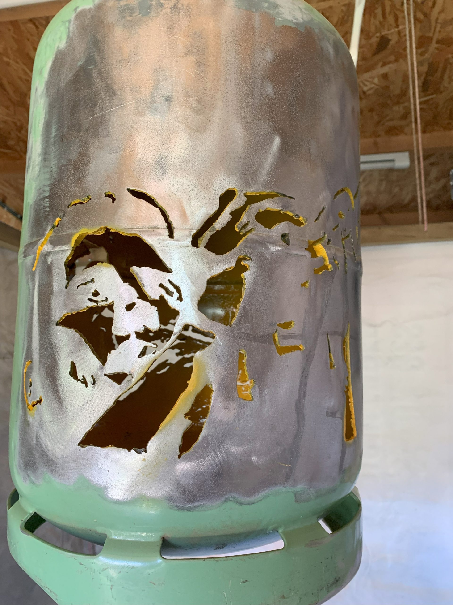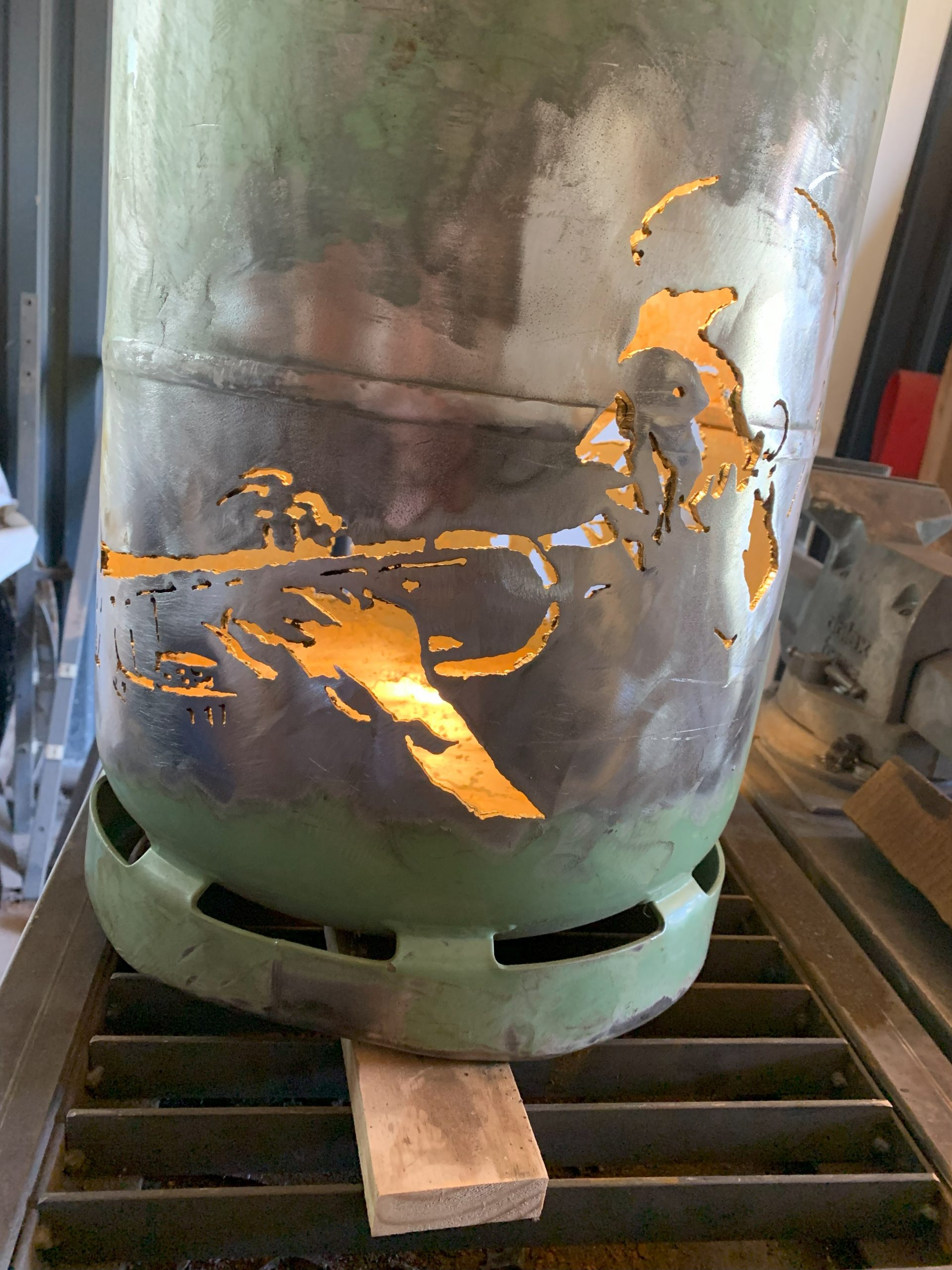 J’ai déja fait un certain nombre de lampes avec des bouteilles de gaz, mais pour l’anniversaire de Nico qui joue de la trompette à la fanfare, je me suis lancé dans une lampe plus élaborée à partir de deux belles photos Noir et Blanc.