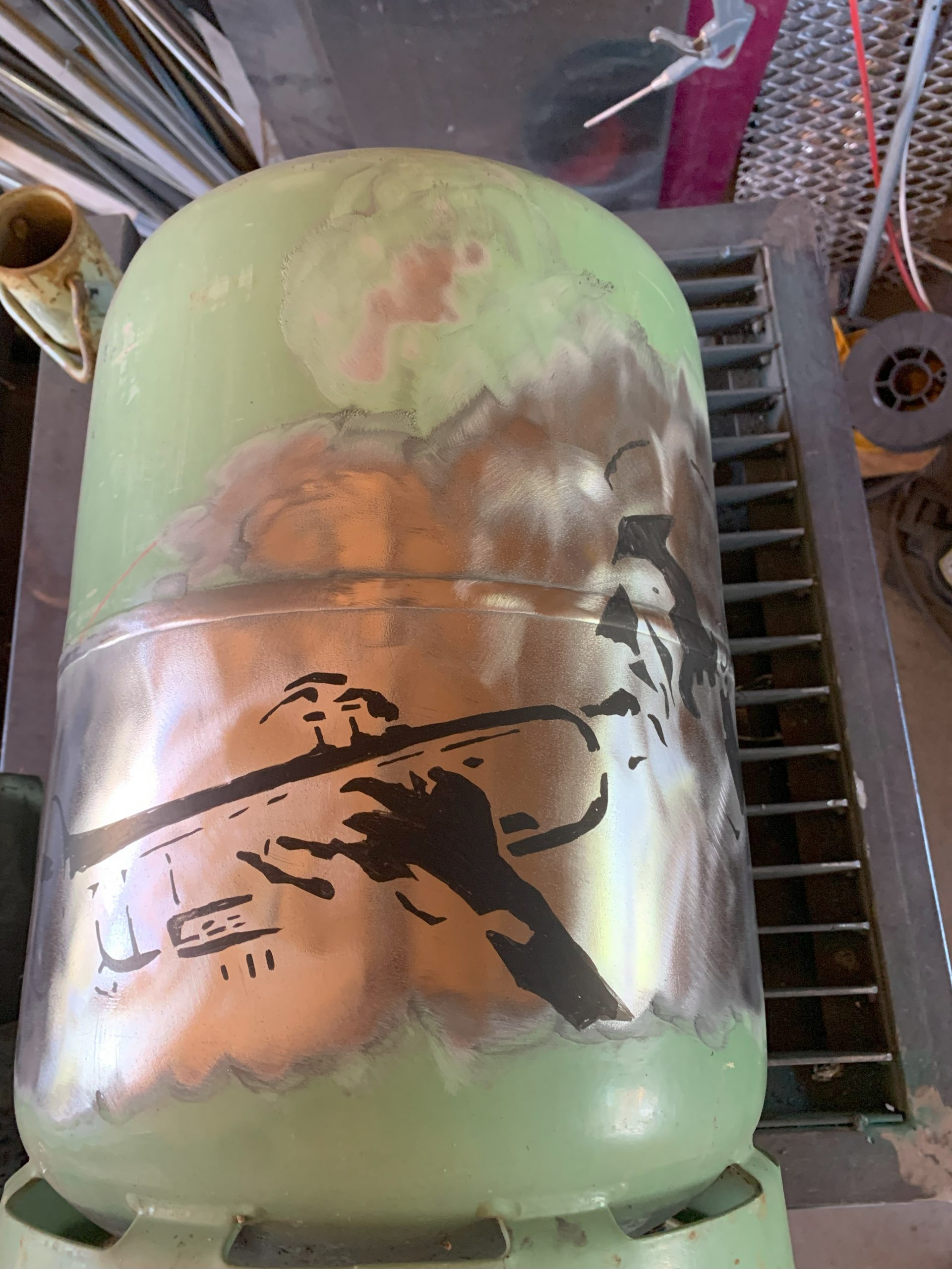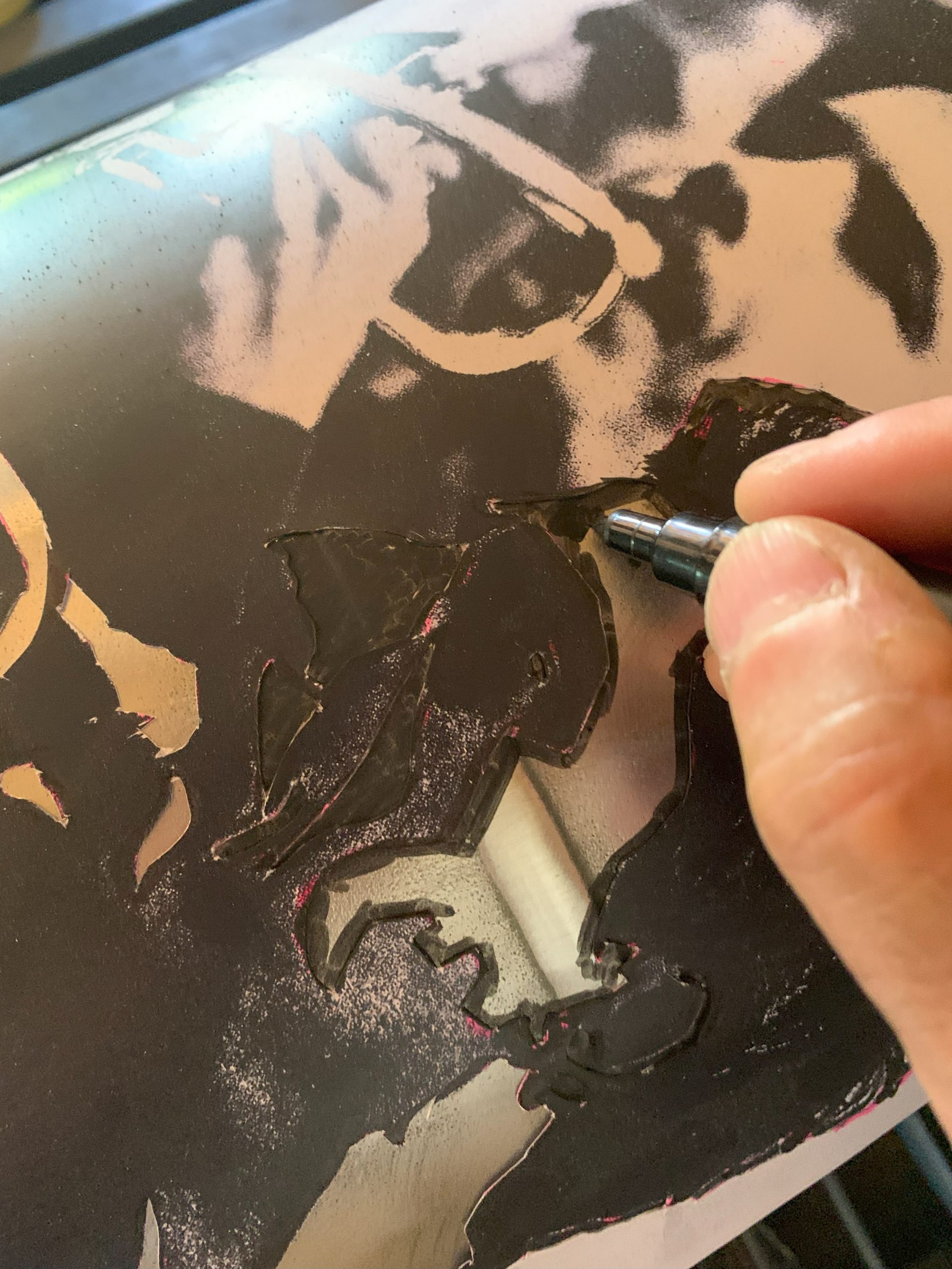 Pour éliminer une partie des difficultés j’ai décapé la peinture et j’ai tracé directement au posca sur le métal à nu.