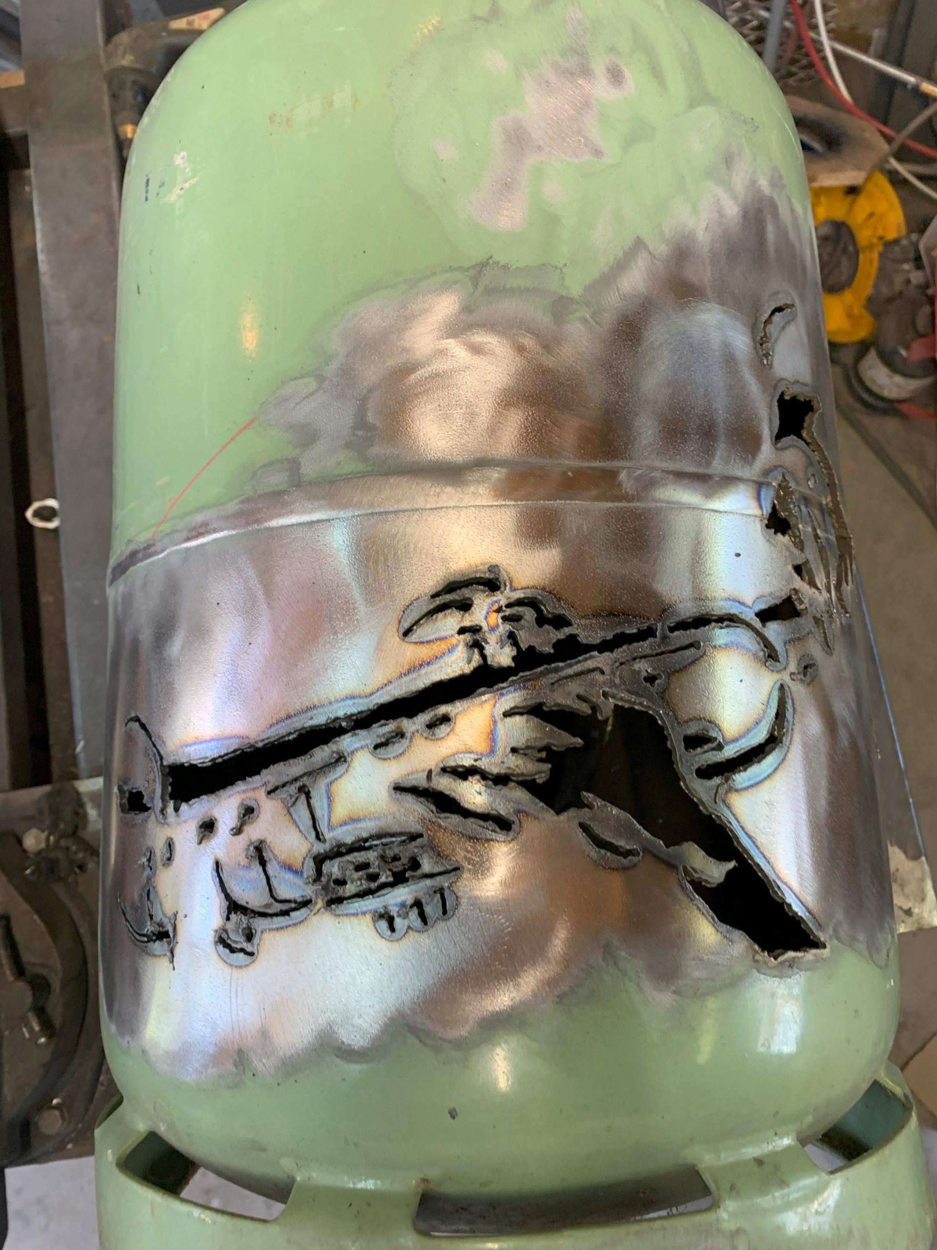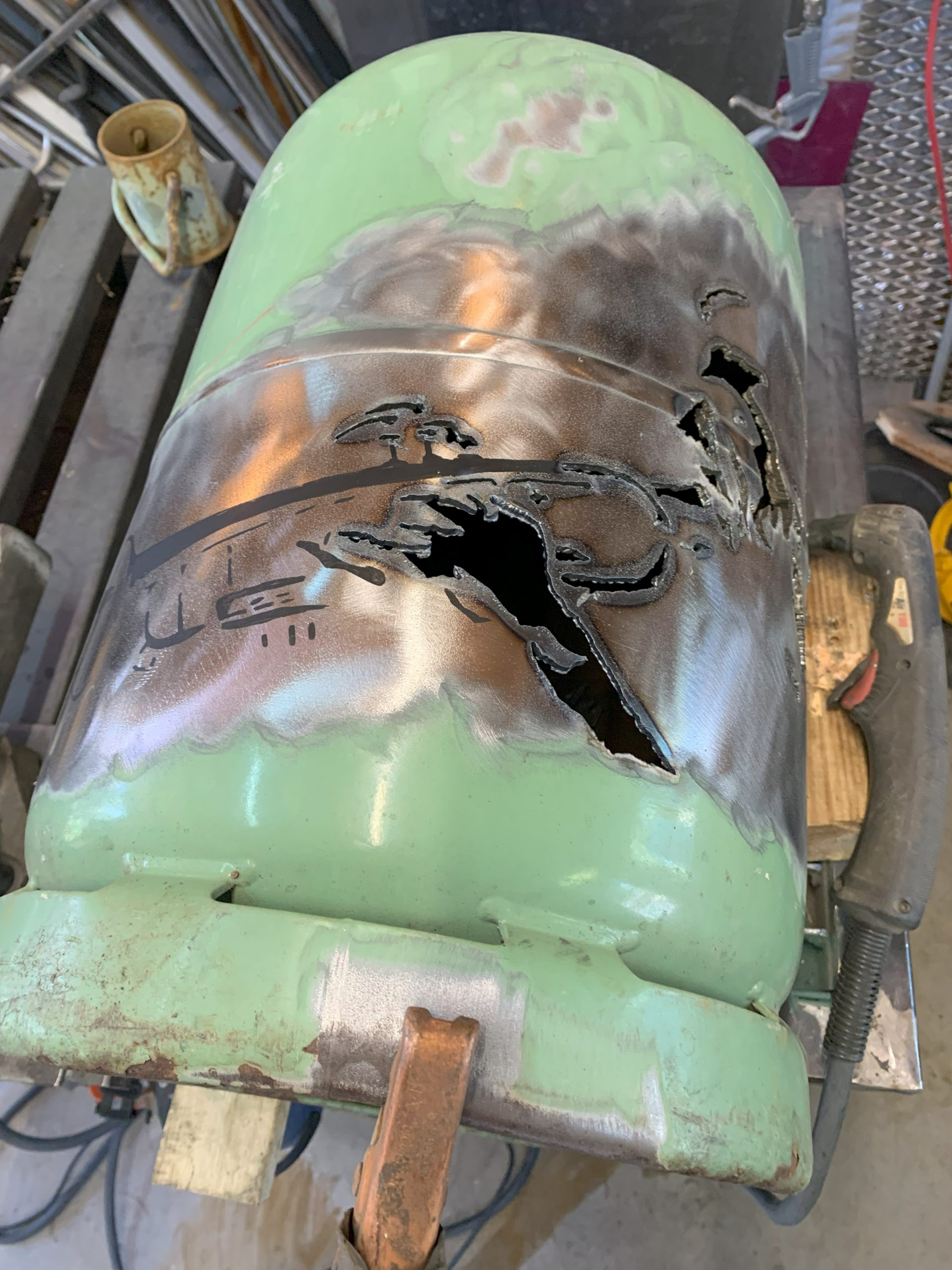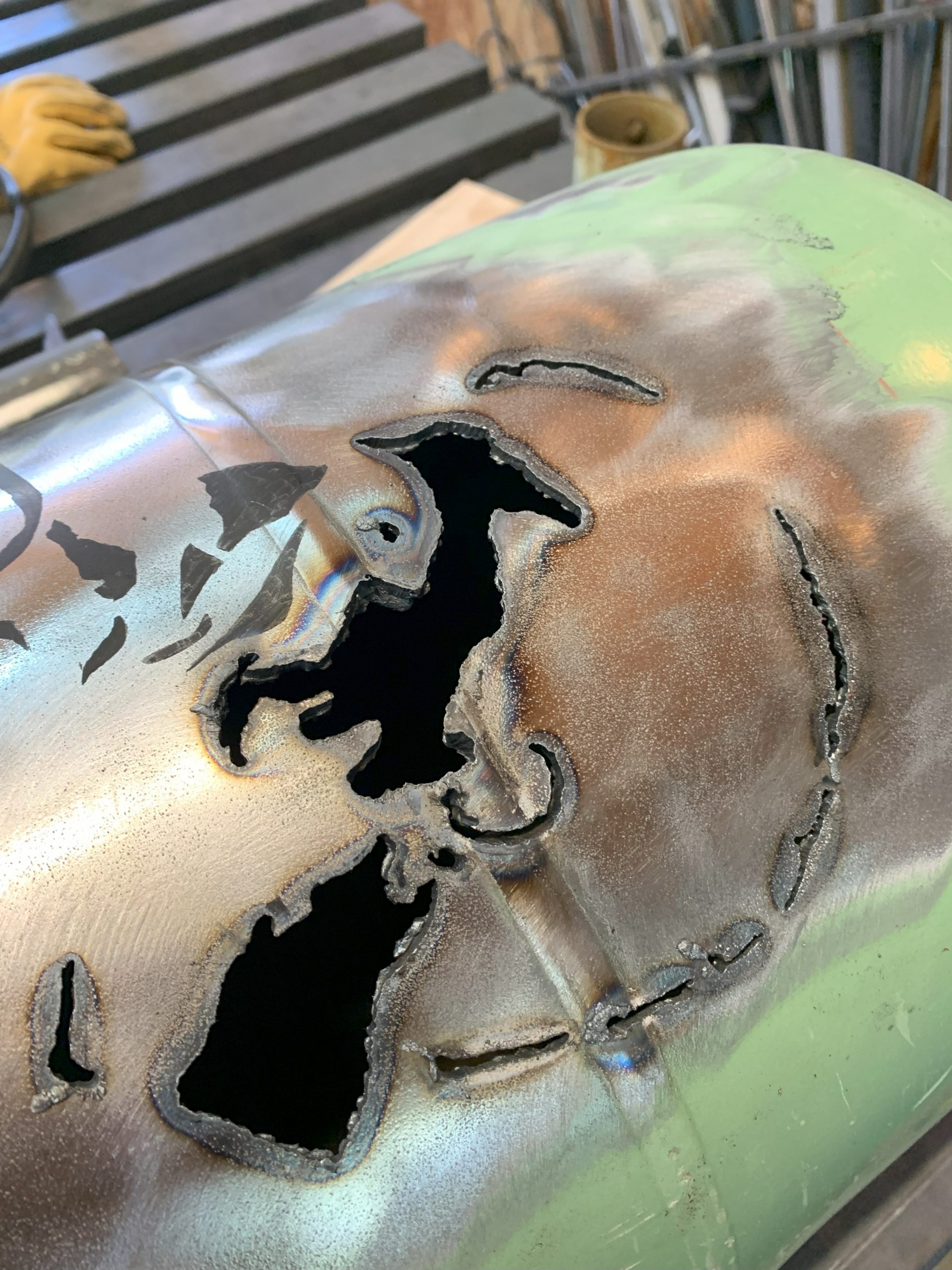 Puis j’ai attaqué la découpe avec la torche plasma en essayant de suivre les contours, et celà s’est plutôt bien passé.