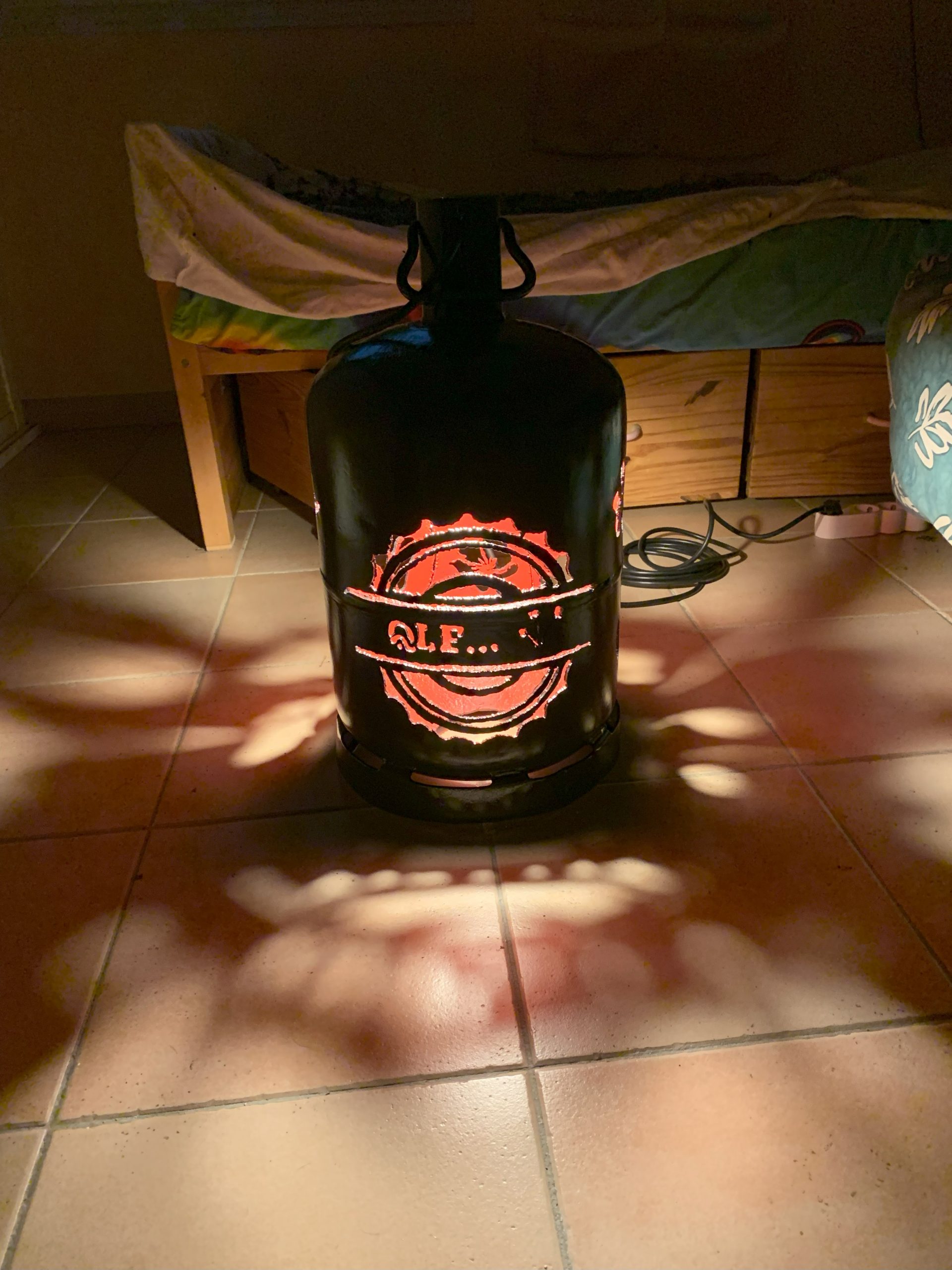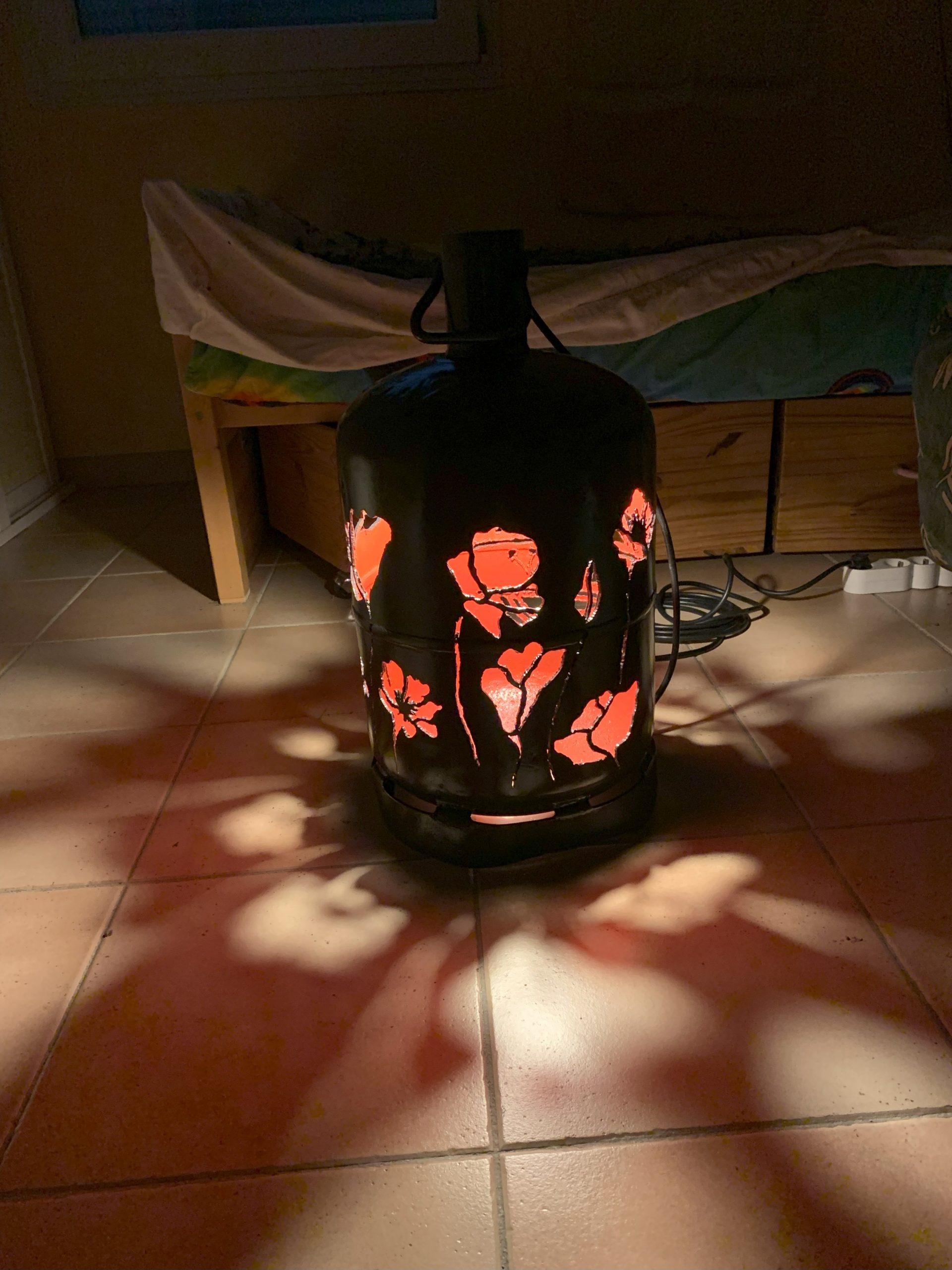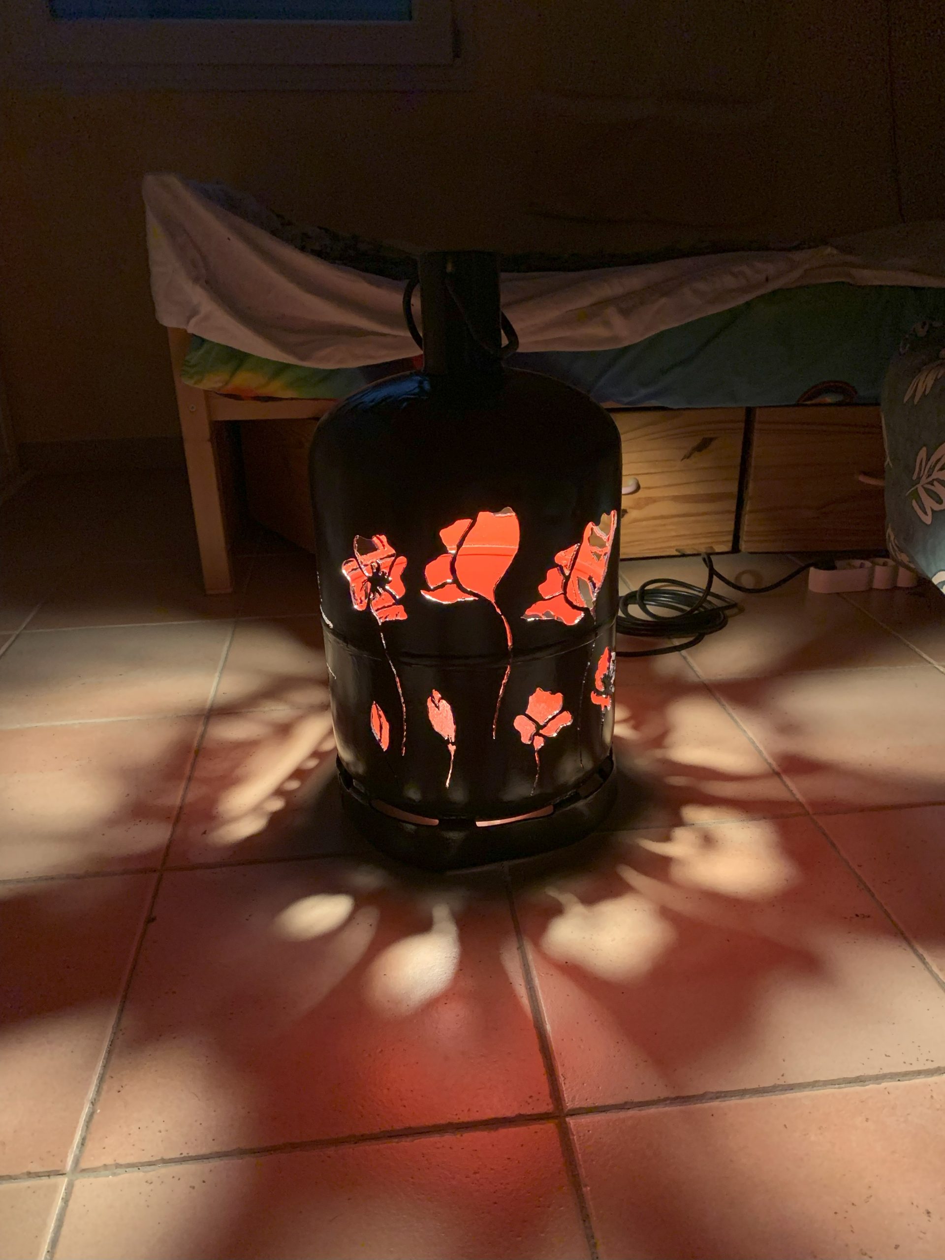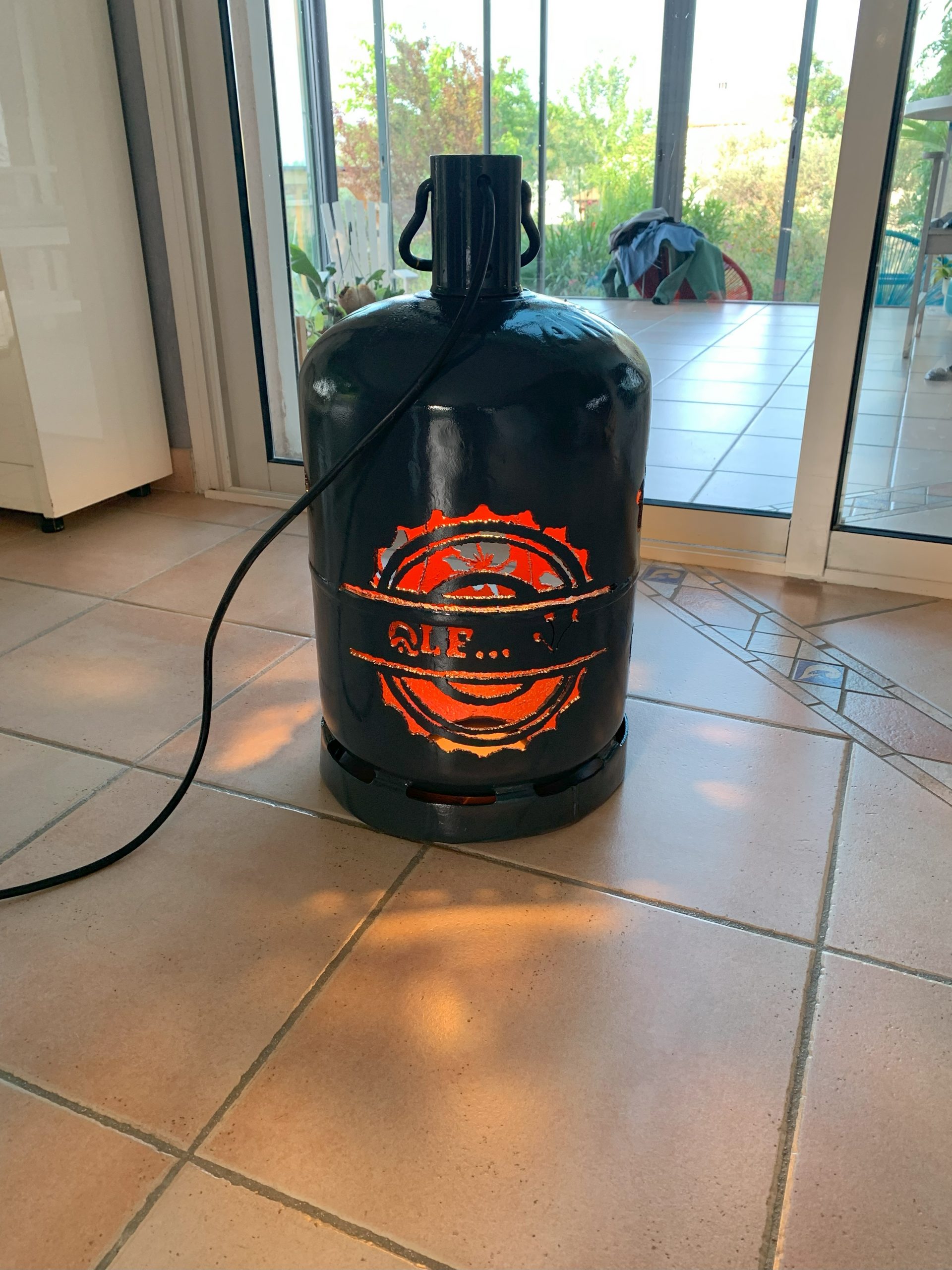 Pour les remercier j’essaie de faire un cadeau à chaque fois, et cette année c’est une lampe en bouteille de gaz. Après celle pour l’Autan en Fanfare, et l’anniversaire de Nico, c’est la troisième en un mois.