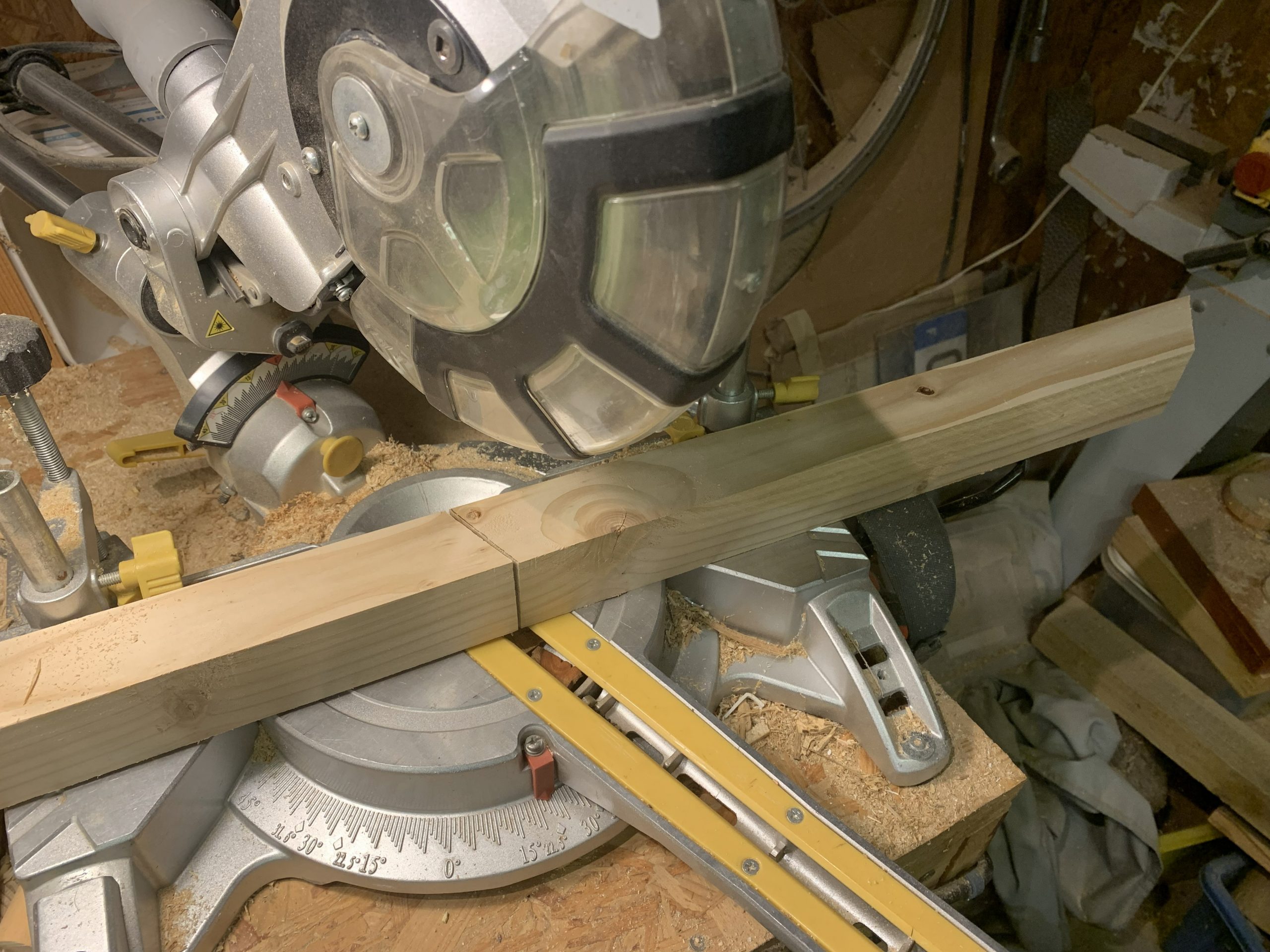 J’ai coupé les montants en angle à la scie à onglets.