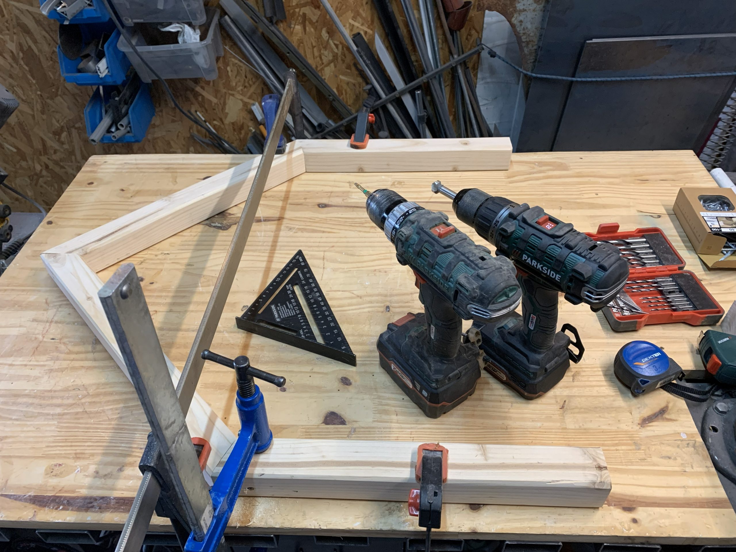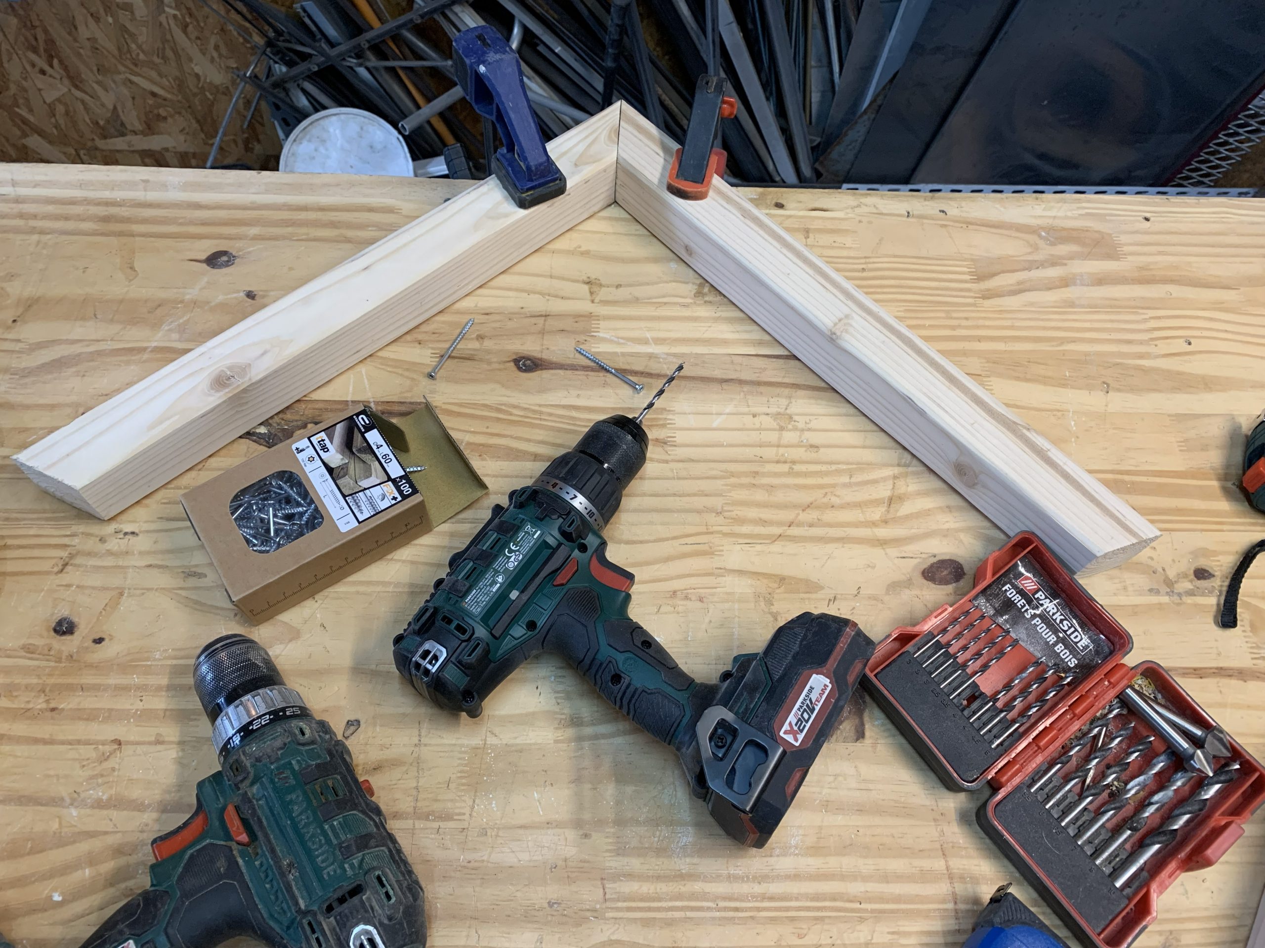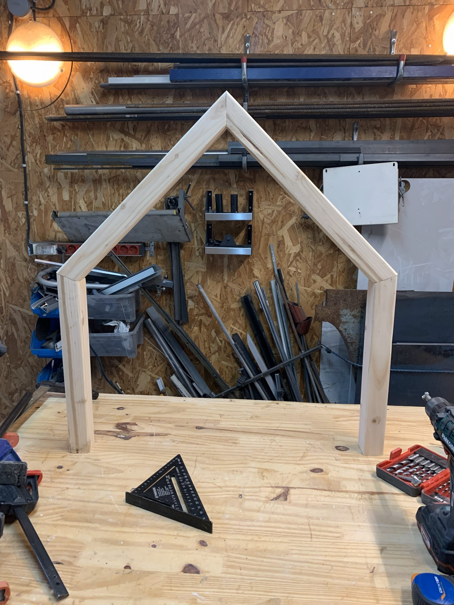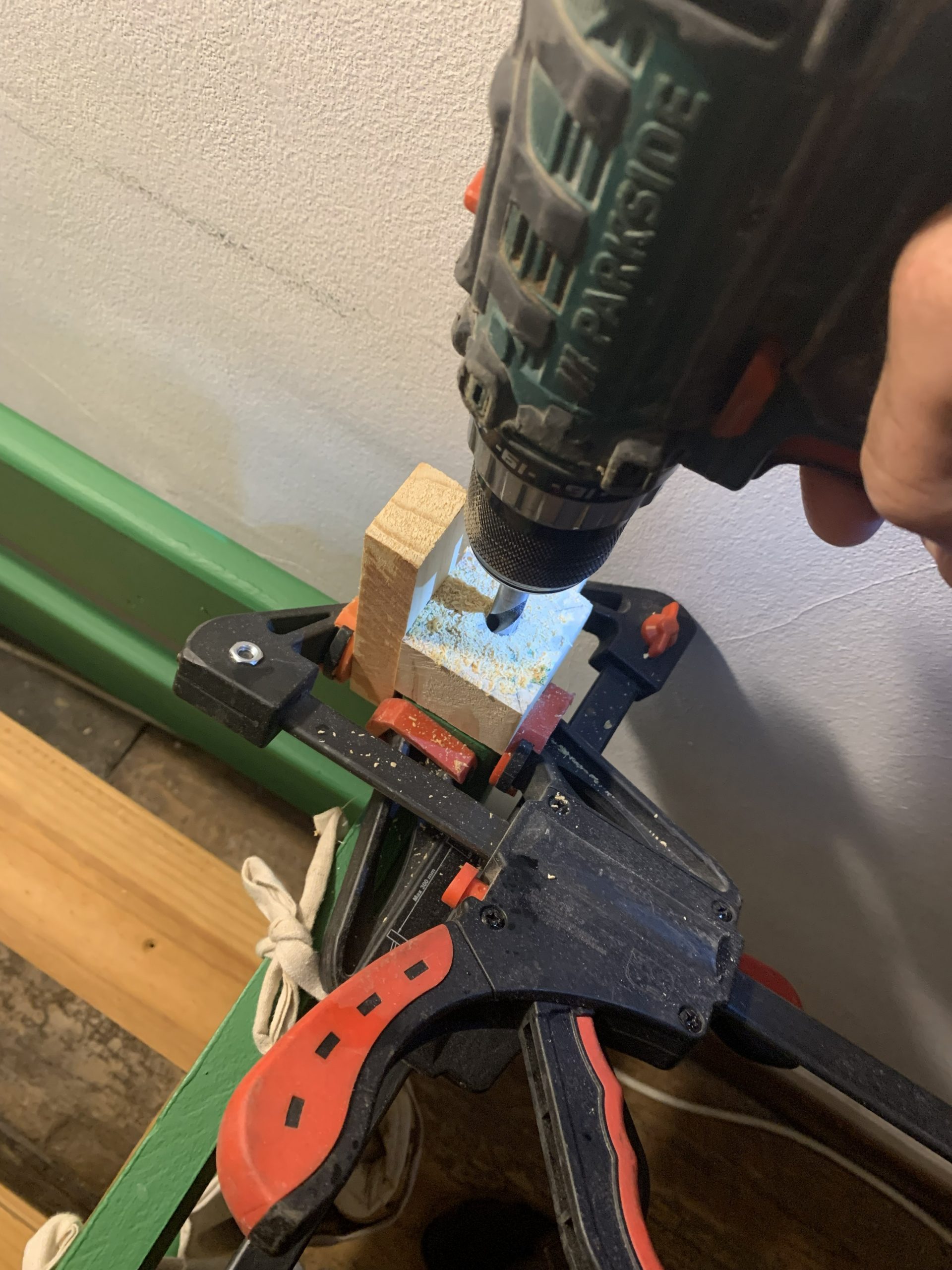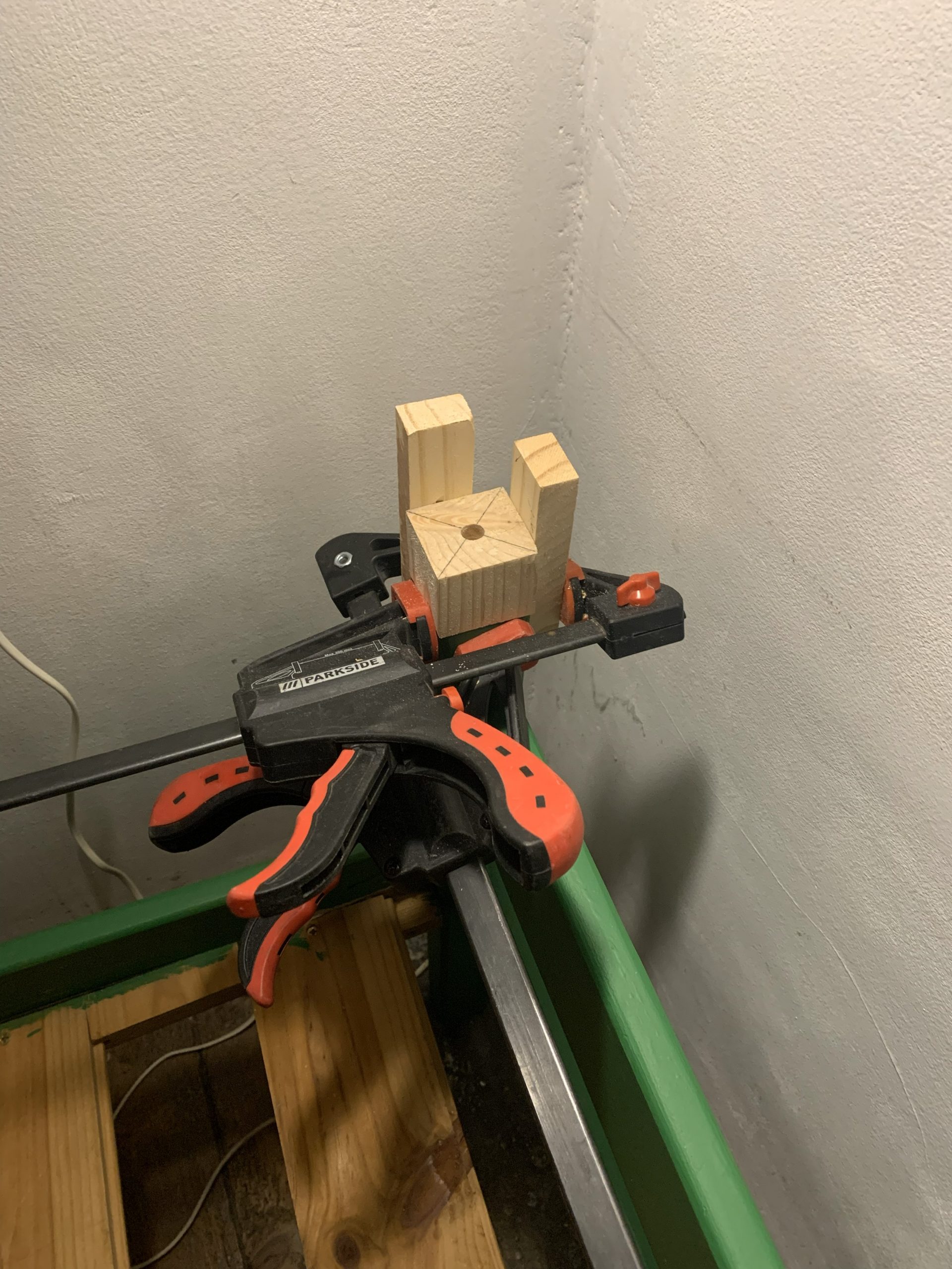 Pour percer correctement les montants, j’ai fait un outillage.