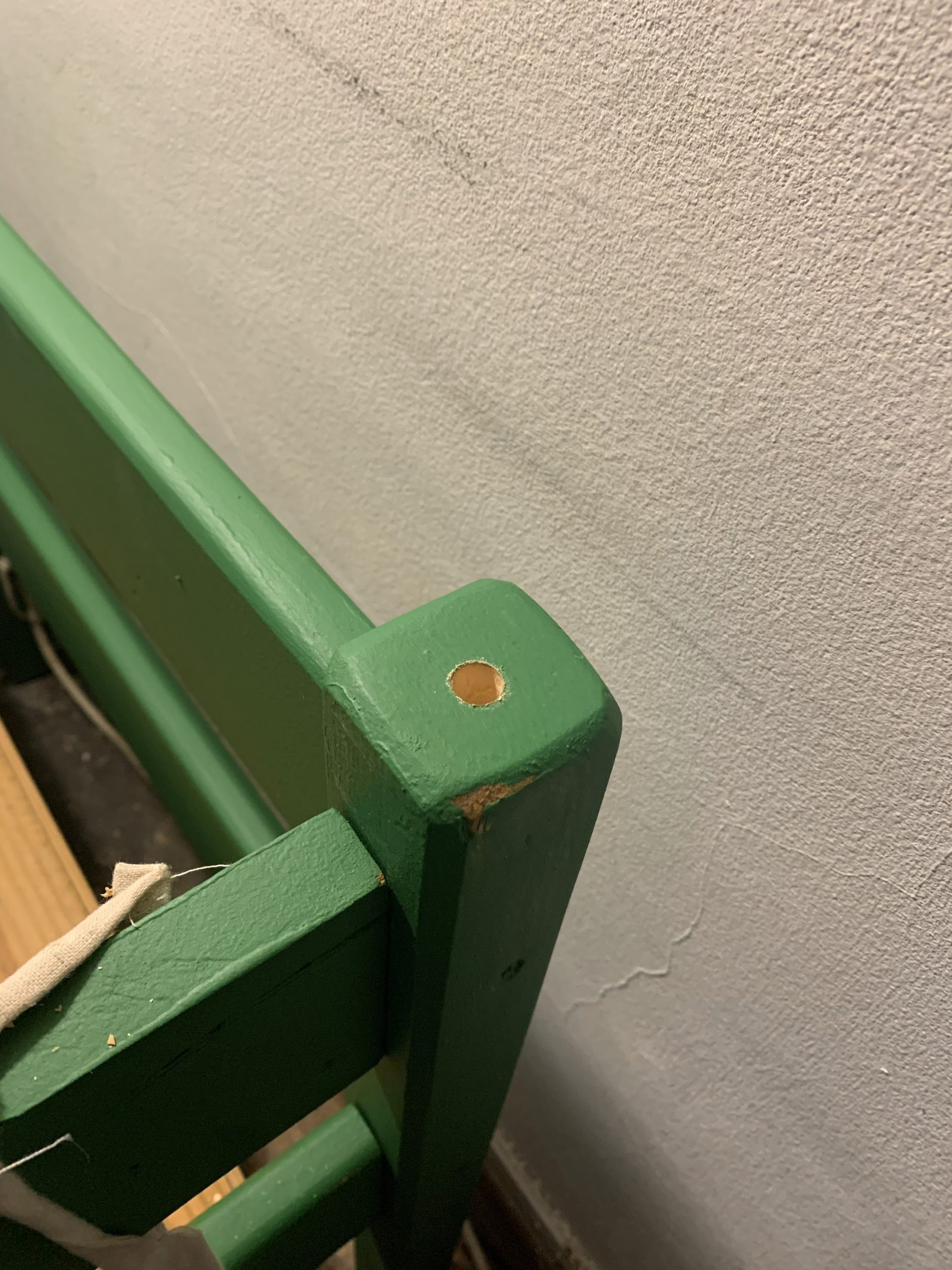 Pour assembler les montants du lit et de la cabane, j’ai prévu des tourillons ce qui rend le montage démontable pour peindre ou déménager.