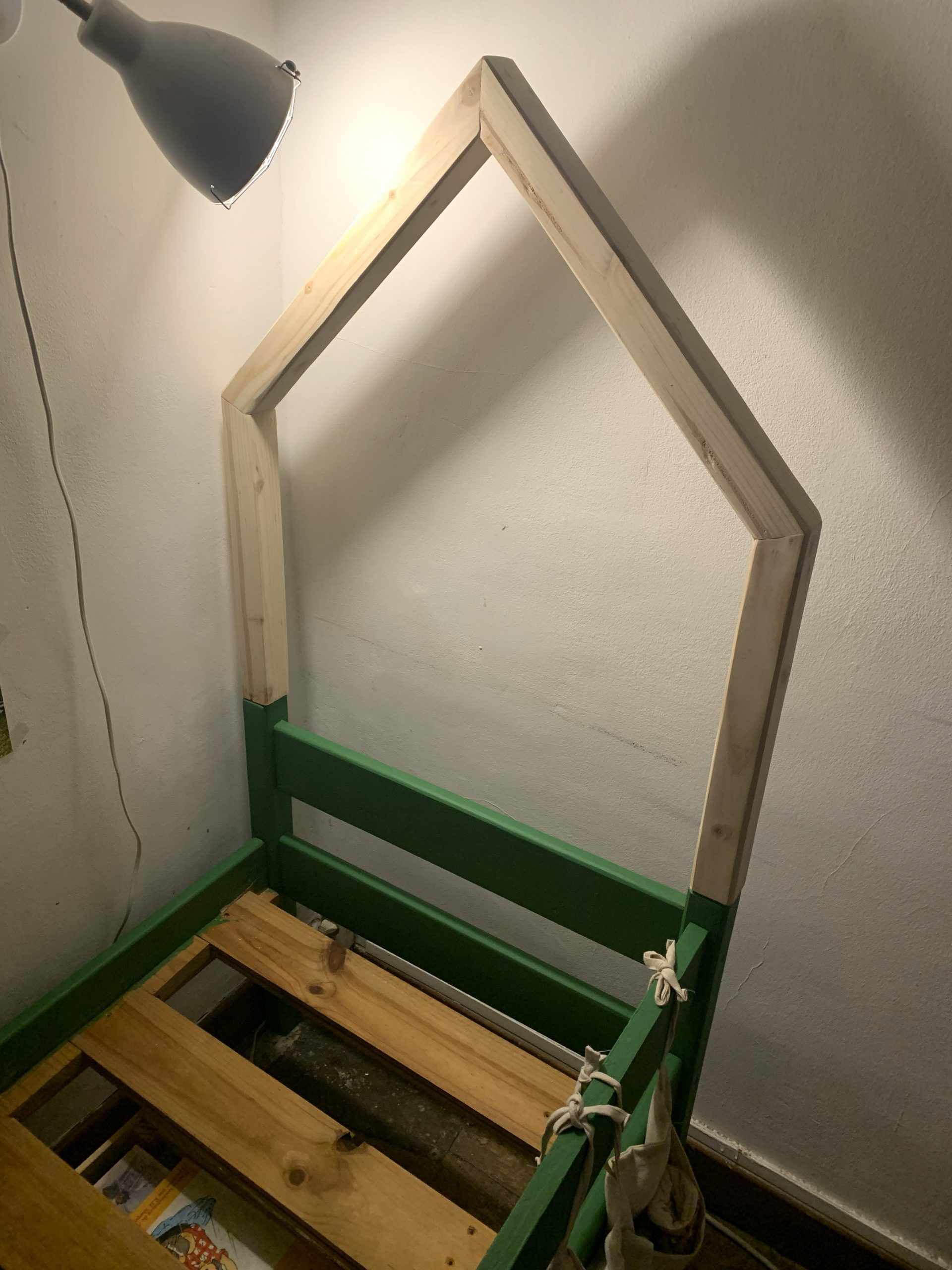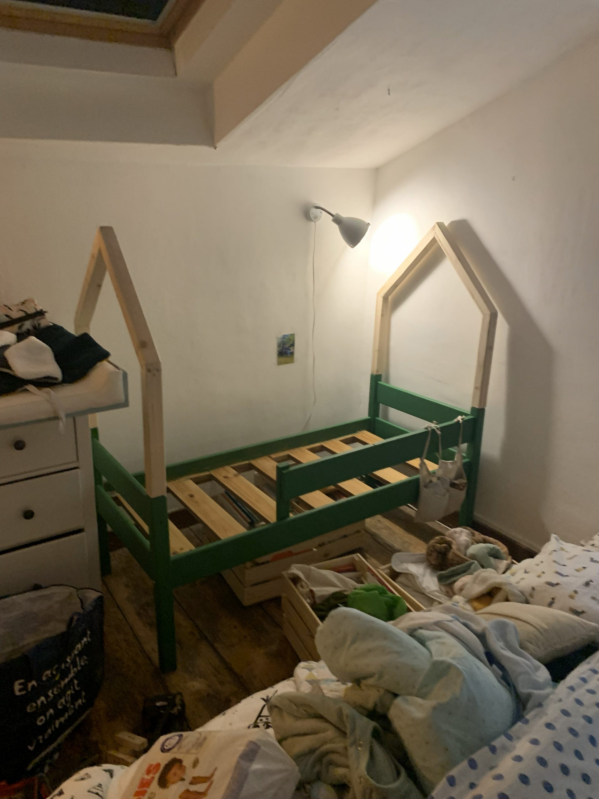 Chloé et Marvyn l’ont personnalisé en le repeignant en vert, et elle m’a demandé si je pouvais modifier la structure pour en faire un lit cabane.