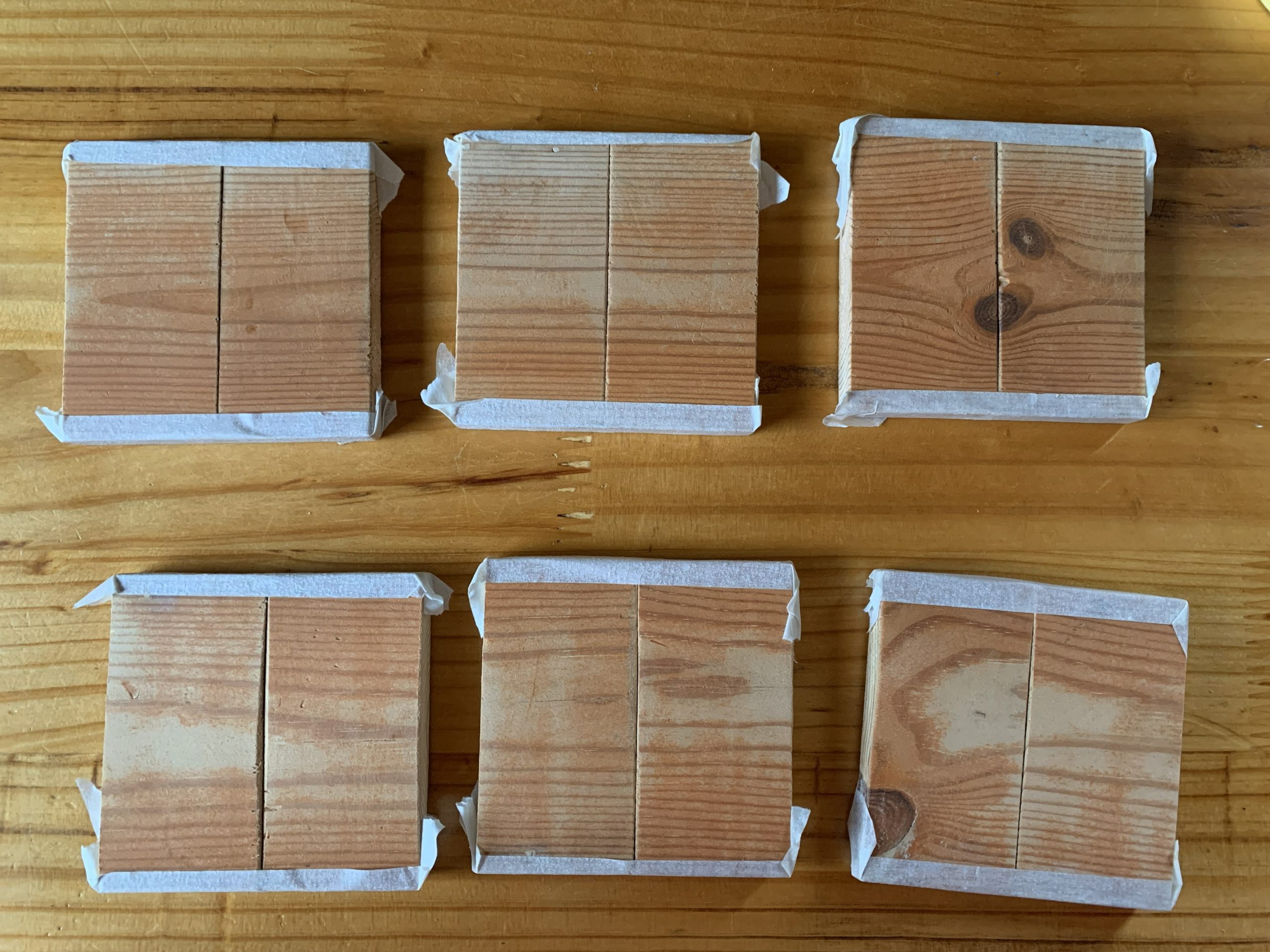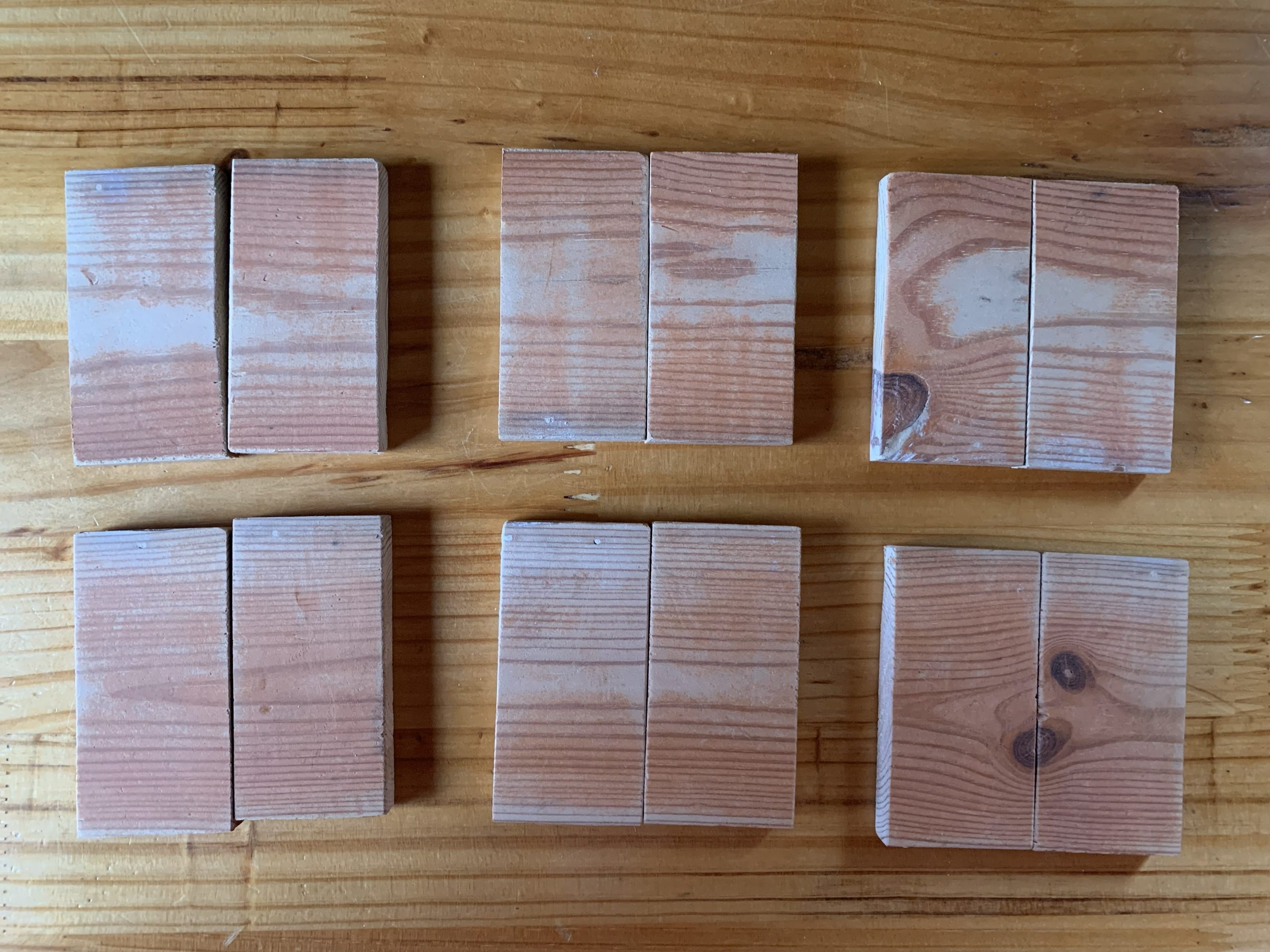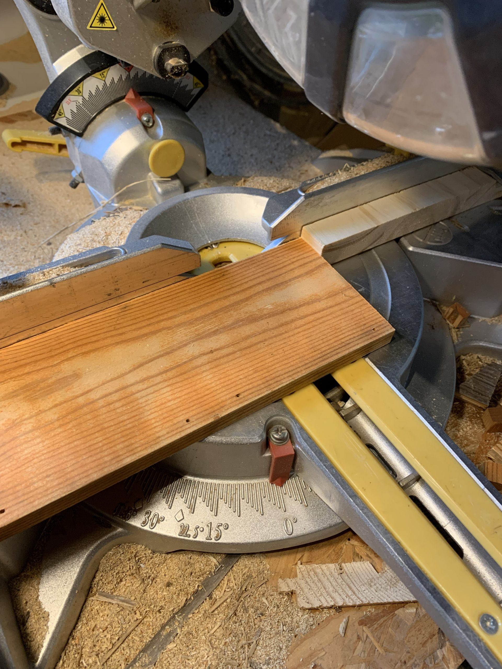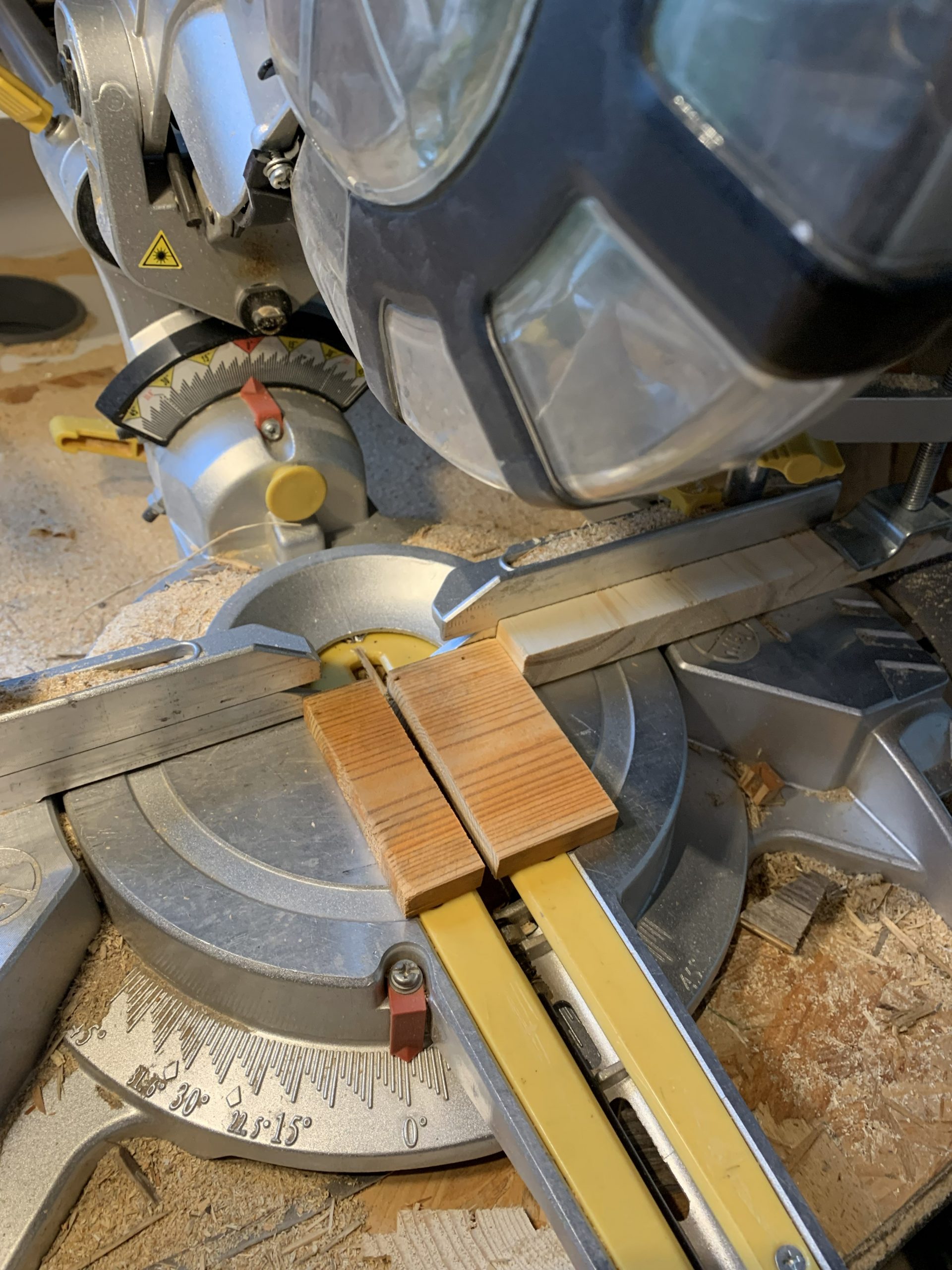 J’ai coupé à la scie à onglets et poncé. J’ai fait 6 carrés coupés en 2.