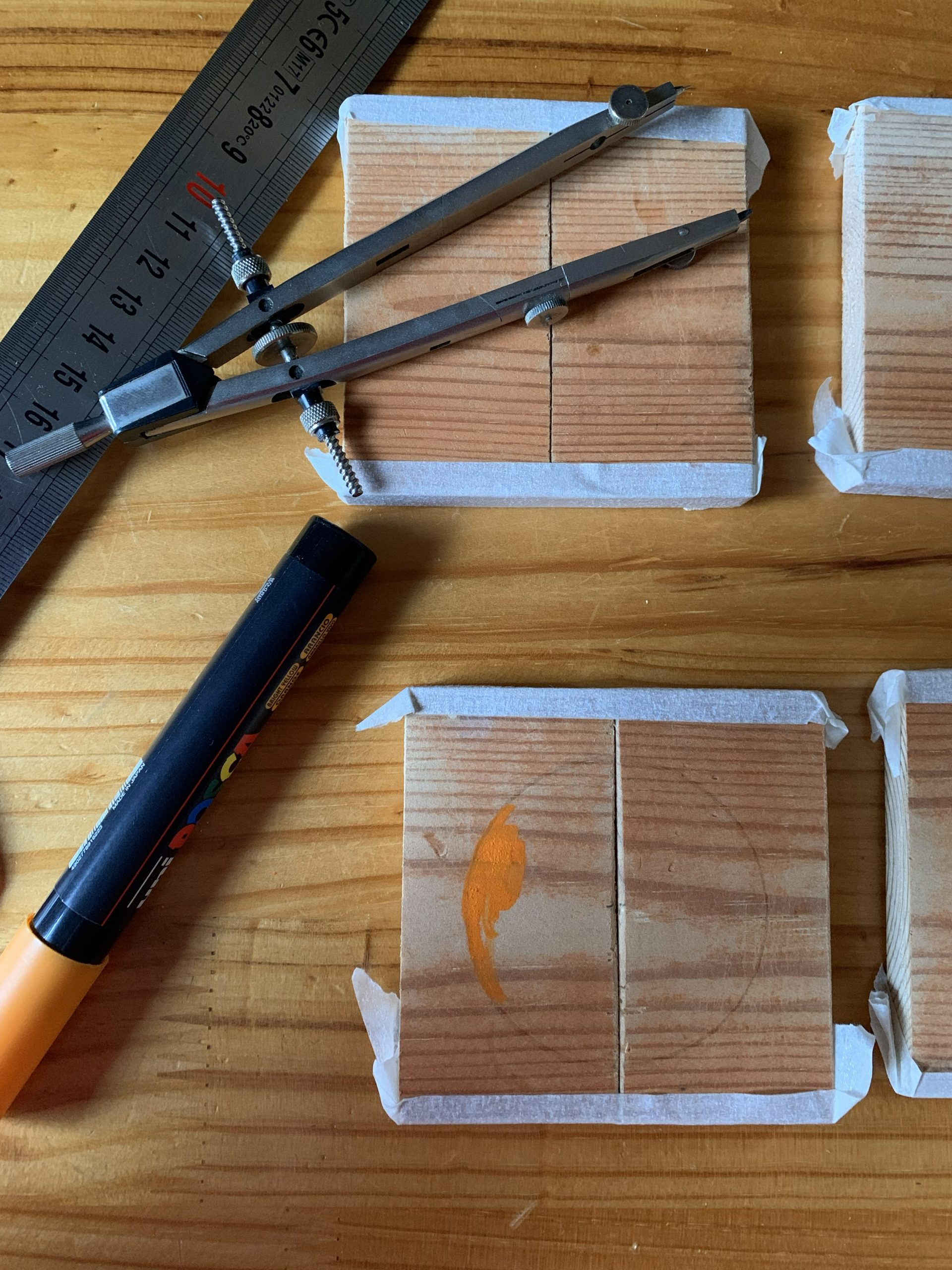 Pour les motifs simples j’ai simplement dessiné sur le bois. Pour les motifs plus complexes je les ai imprimés à partir de formes PWPT, et j’ai découpé et reporté sur le bois. J’ai dû m’y reprendre à 2 fois pour ajuster l’échelle des motifs et obtenir ce que je voulais.