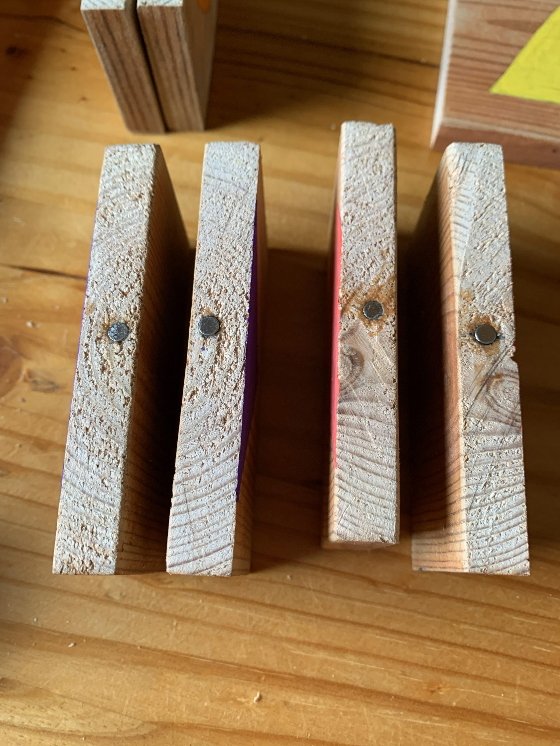 Pour que ce soit facile à assembler, j’ai mis des aimants qui font que les deux moitiés s’unissent pour former le carré.